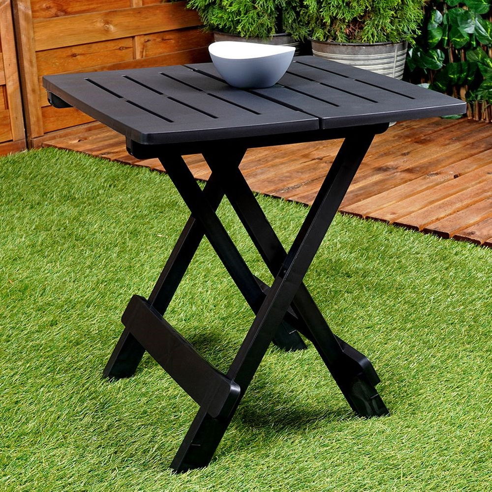 TURYSTYCZNY - Praktyczny, składany stolik ogrodowy. Blat stolika ma wymiary 44 x 44 cm. Stolik po rozłożeniu posiada wysokość 50 cm. Maksymalne obciążenie wynosi 12 kg. Stolik składa się w łatwy sposób a po złożeniu posiada wygodny uchwyt, który ułatwi przenoszenie go.