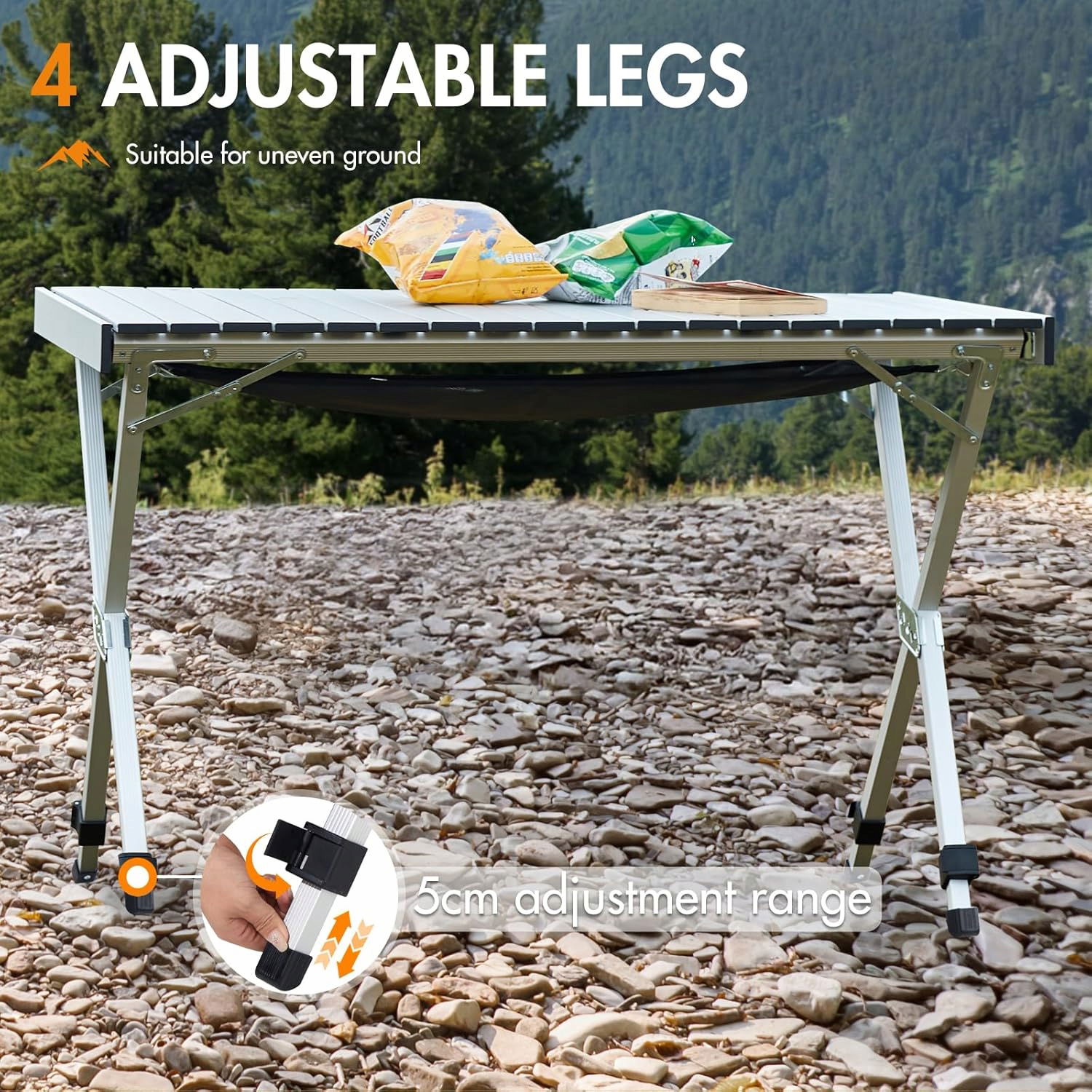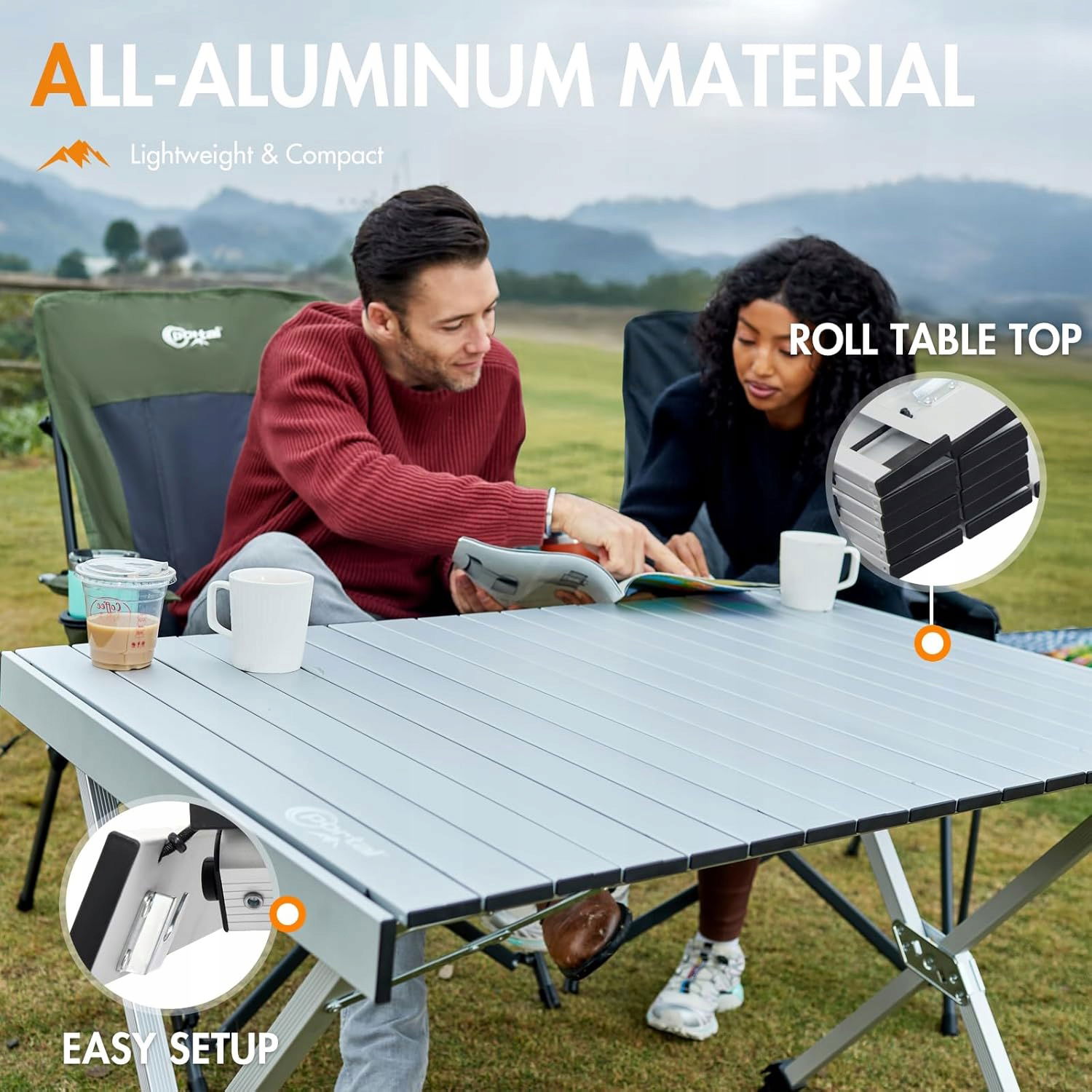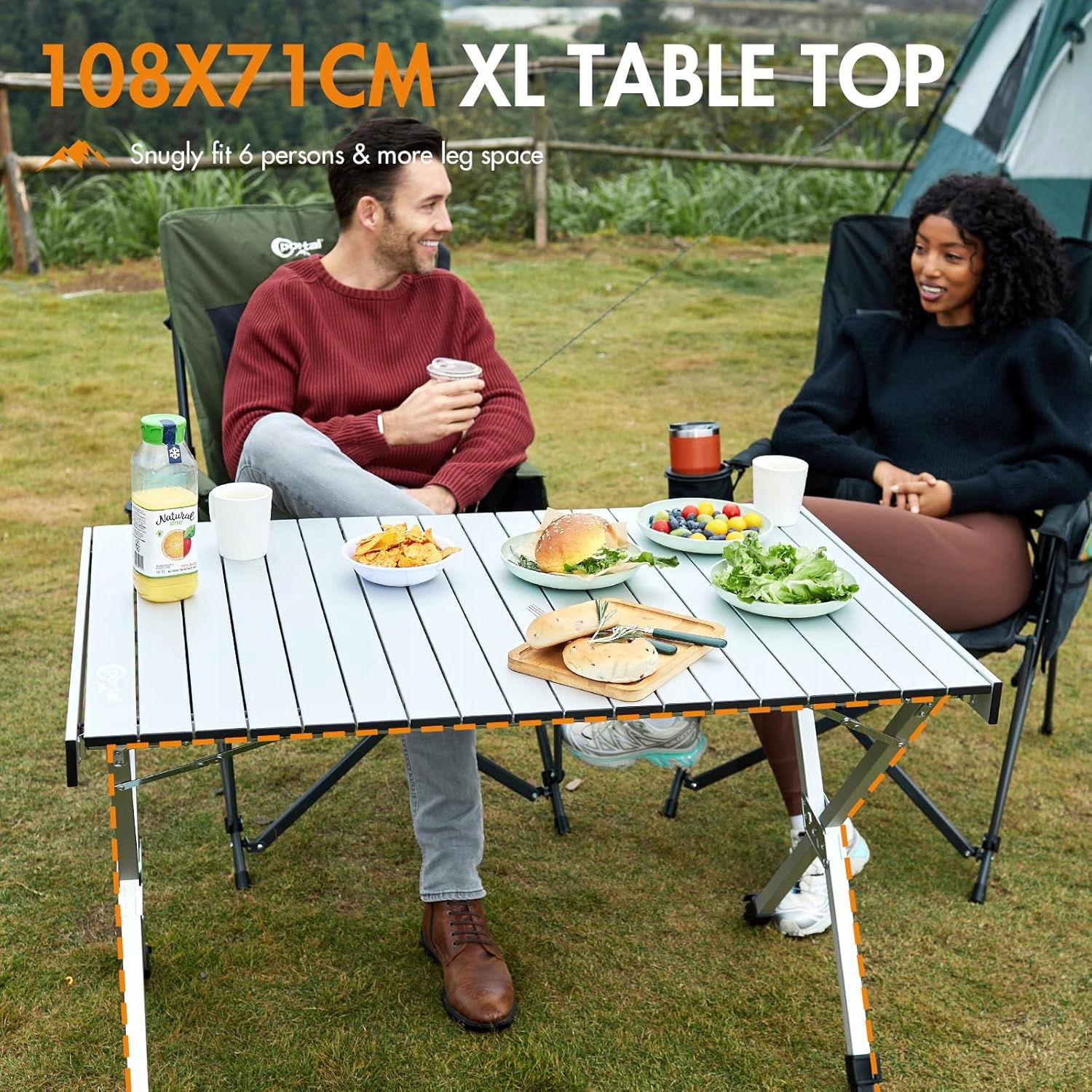 Lekka i wytrzymała konstrukcja aluminiowa pozwala na łatwy transport stołu o wadze 5,3 kg i nośności do 100 kg. Jego przestronny blat 108 × 71 cm idealnie nadaje się na rodzinne posiłki czy spotkania przy winie.