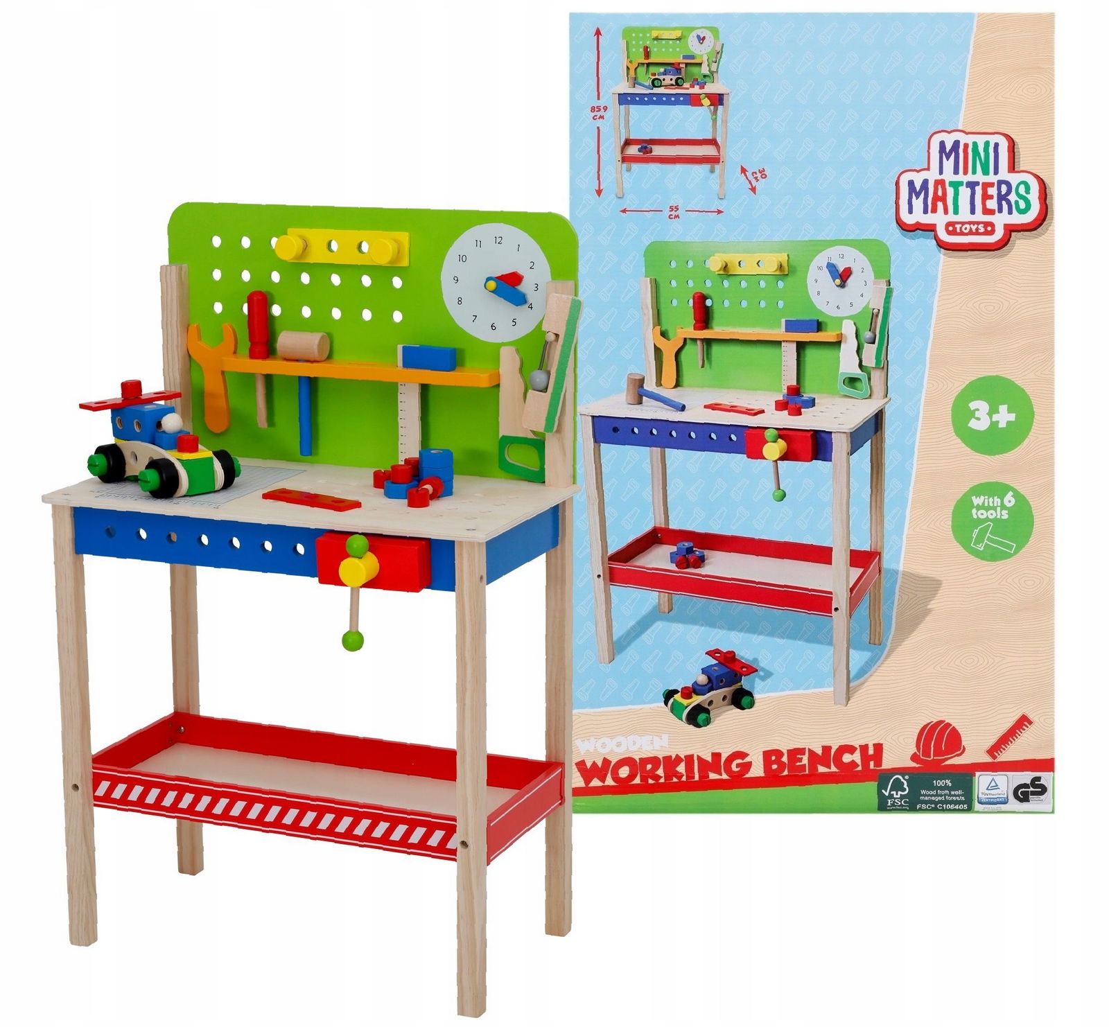 STÓŁ Warsztatowy Drewniany dla dzieci WARSZTAT MAJSTERKOWICZA + NARZĘDZIA