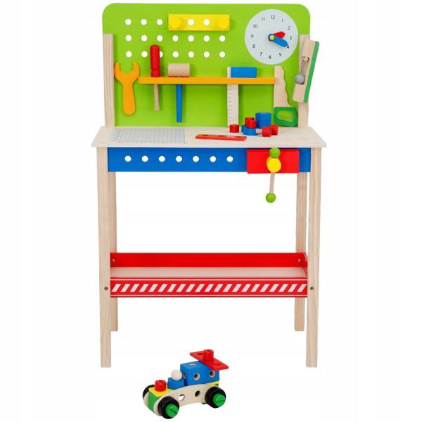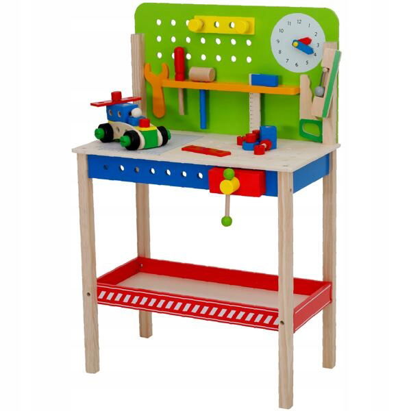 Każdy chłopiec uwielbia majsterkować. Możecie Państwo sprawić dziecku niespodziankę w postaci tego drewnianego warsztatu. Zestaw jest świetnie dopracowany, zapewni dziecku wiele radości.