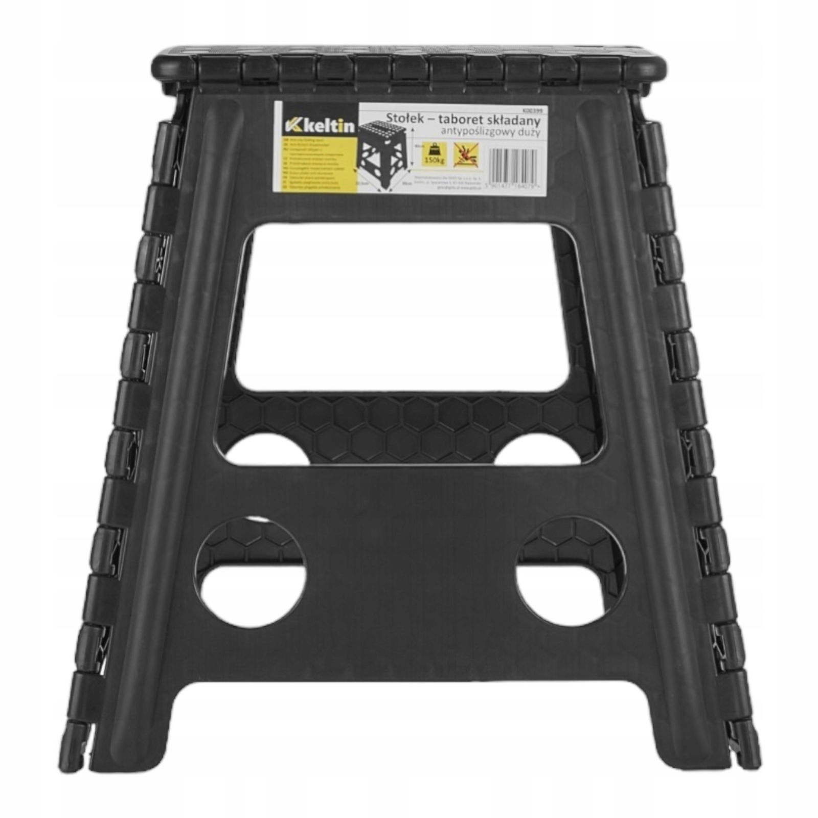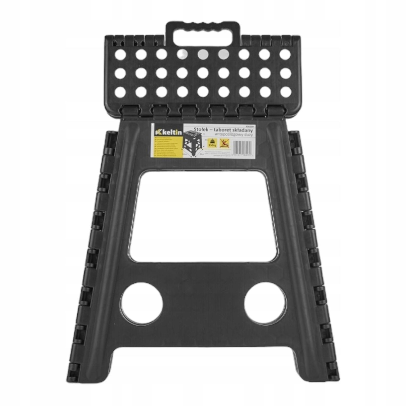 Taboret wykonany został z tworzywa sztucznego, który cechuje się wytrzymałością – utrzymuje nacisk do 150kg. Dzięki możliwości składania taboretu, nie potrzebuje bardzo dużej przestrzeni do przechowywania. Produkt wyposażony jest w dodatkową rączkę, która ułatwi przenoszenie. Taboret uzupełniony został również punktami antypoślizgowymi, które zapewnią większe bezpieczeństwo.