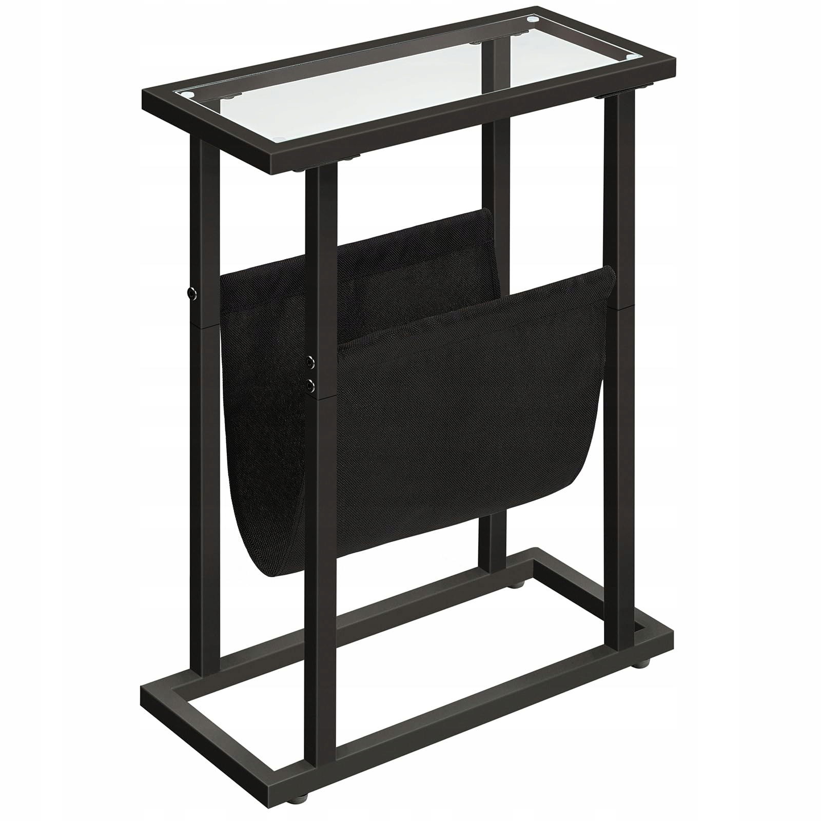Stolik boczny czarny 40x18x55 cm szkło metal loft nowoczesny gazetnik