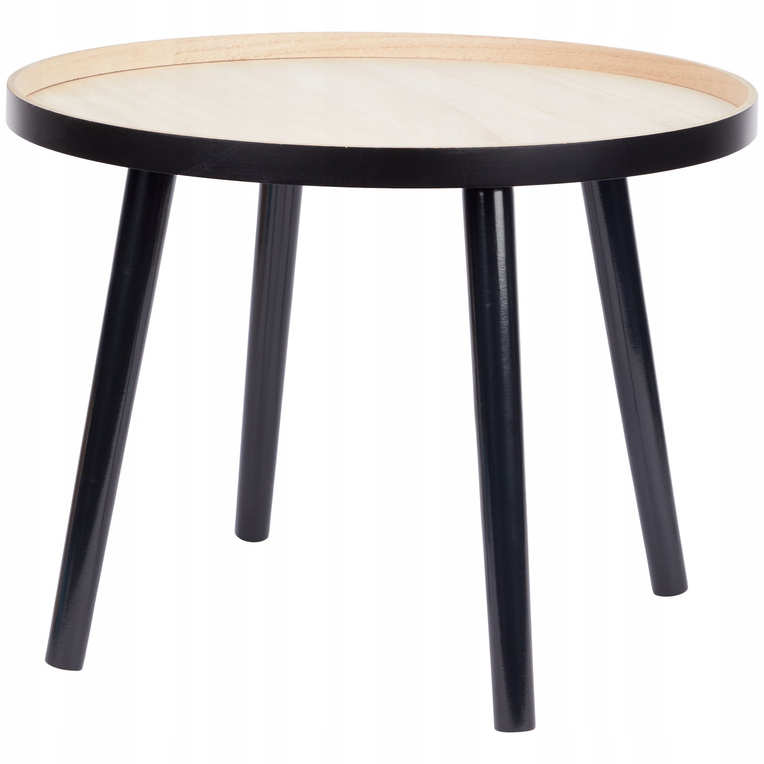 STOLIK KAWOWY DO SALONU 50x50x38 cm BEŻ CZERŃ Z DREWNA GLAMOUR LOFTOWY 7234