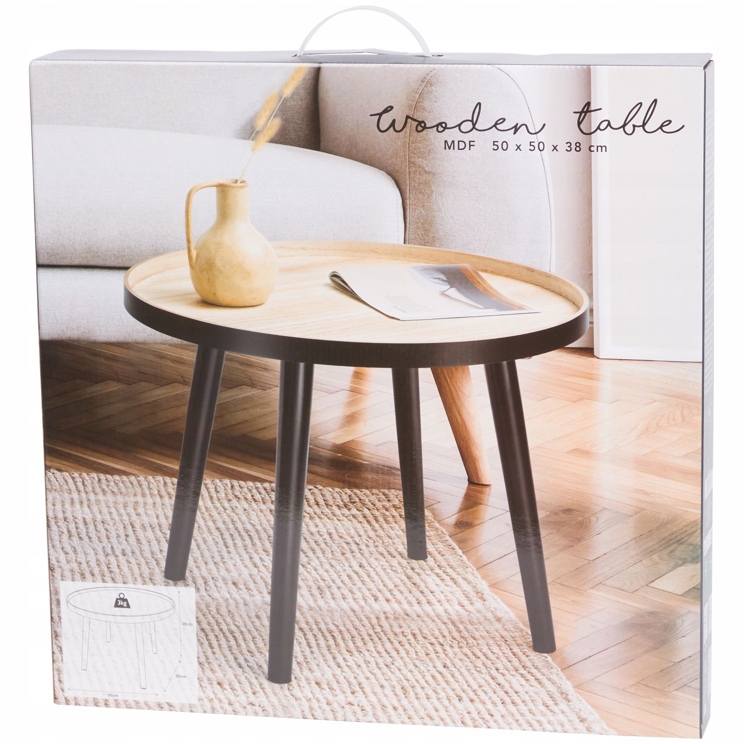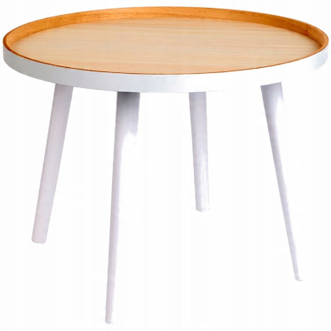 STOLIK KAWOWY DO SALONU 50x50x38 cm STYL SKANDYNAWSKI BEŻOWO BIAŁY