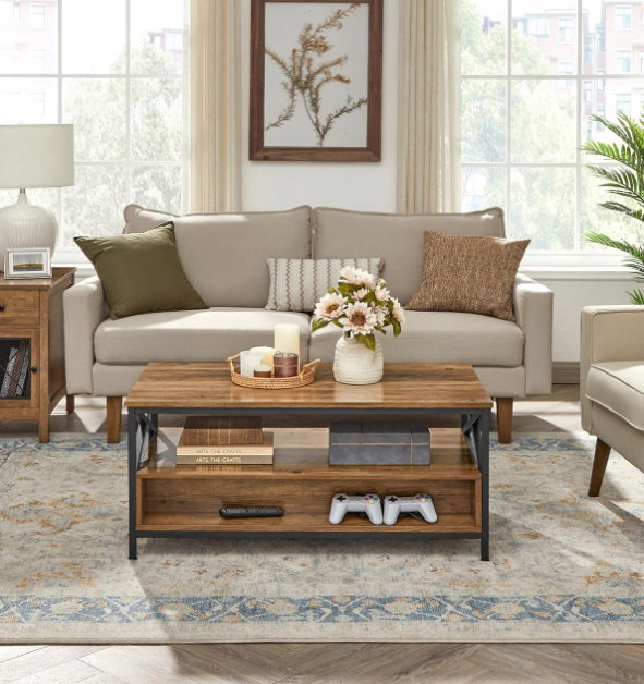 - ✴️Dodaj stylowego wiejskiego charakteru: matowa czarna rama stalowa w kształcie litery X i płyta wiórowa o rustykalnym wyglądzie orzecha włoskiego tworzą elegancką mieszankę stylów, które nadają meblom do salonu indywidualny charakter