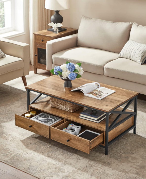 Stolik kawowy, do salonu, z szufladami 100 x 55 x 45 cm VASAGLE LCT201B41V1
