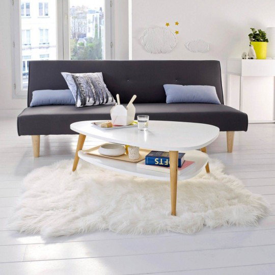 STOLIK KAWOWY DREWNIANY PÓŁKA DREWNIANE NOGI BIAŁY DUŻY BLAT NOWOCZESNY