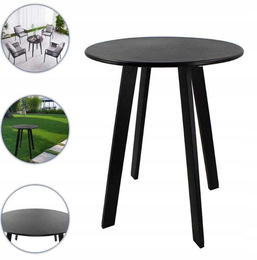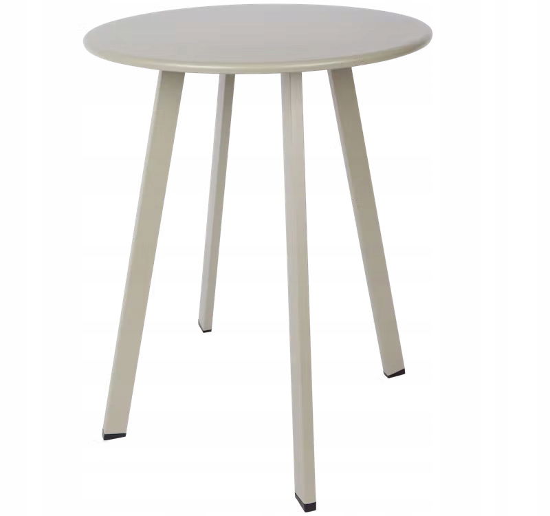 Nowoczesny stolik kawowy w kolorze ciemnej szarości. Okrągły stolik wykonany w całości z metalu w matowym wykończeniu. Stolik jest składany, dzięki czemu po złożeniu zajmuje mało miejsca. Idealny do salonu, sypialni, na balkon czy taras.