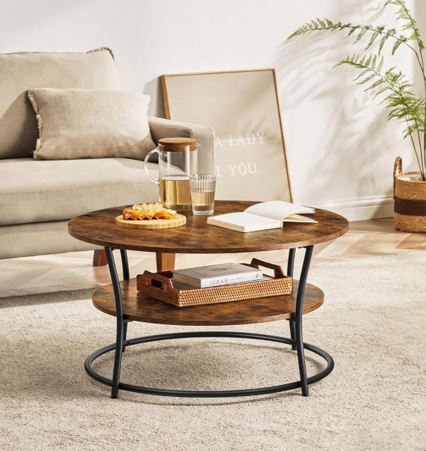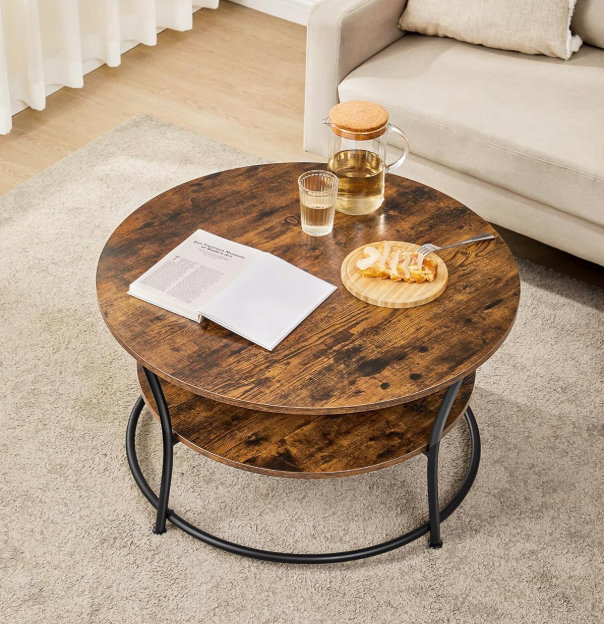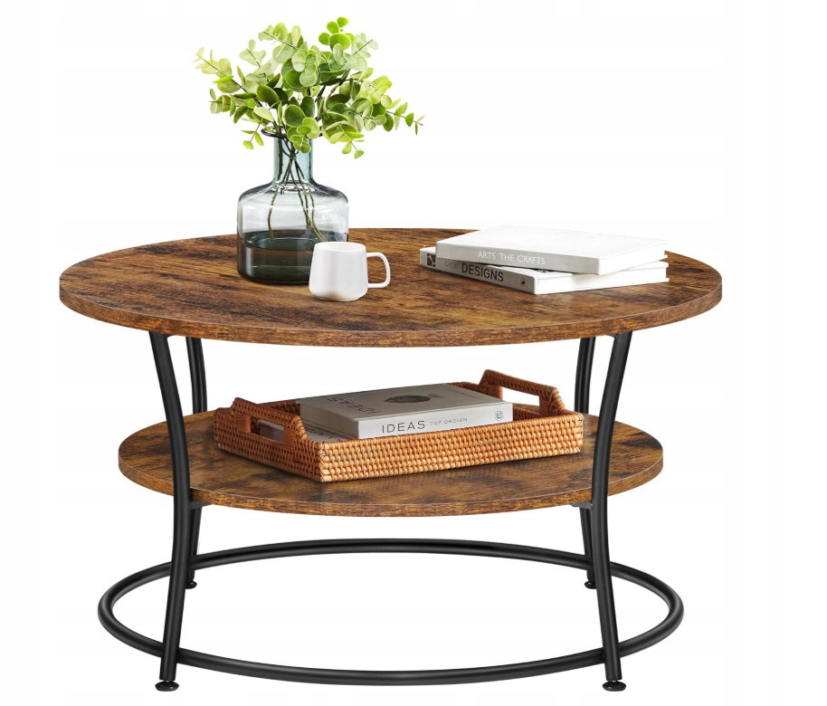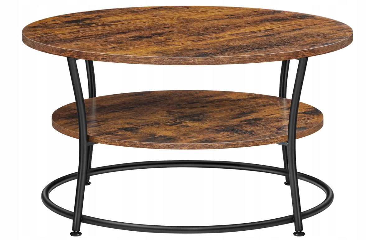 Stolik kawowy, okrągły stolik koktajlowy z półką, VASAGLE LCT80BXV1