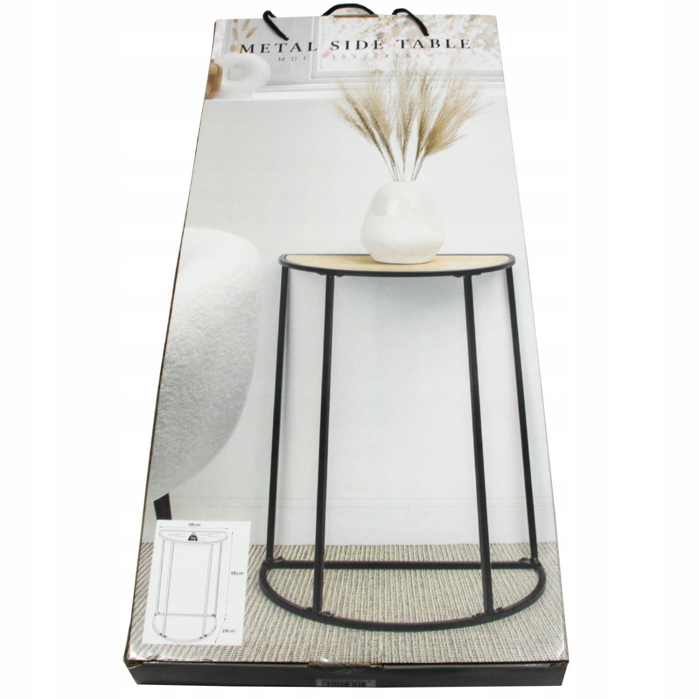 Urocza konsola półokrągła, metalowy stolik z blatem Z MDF do przedpokoju, sypialni, łazienki.