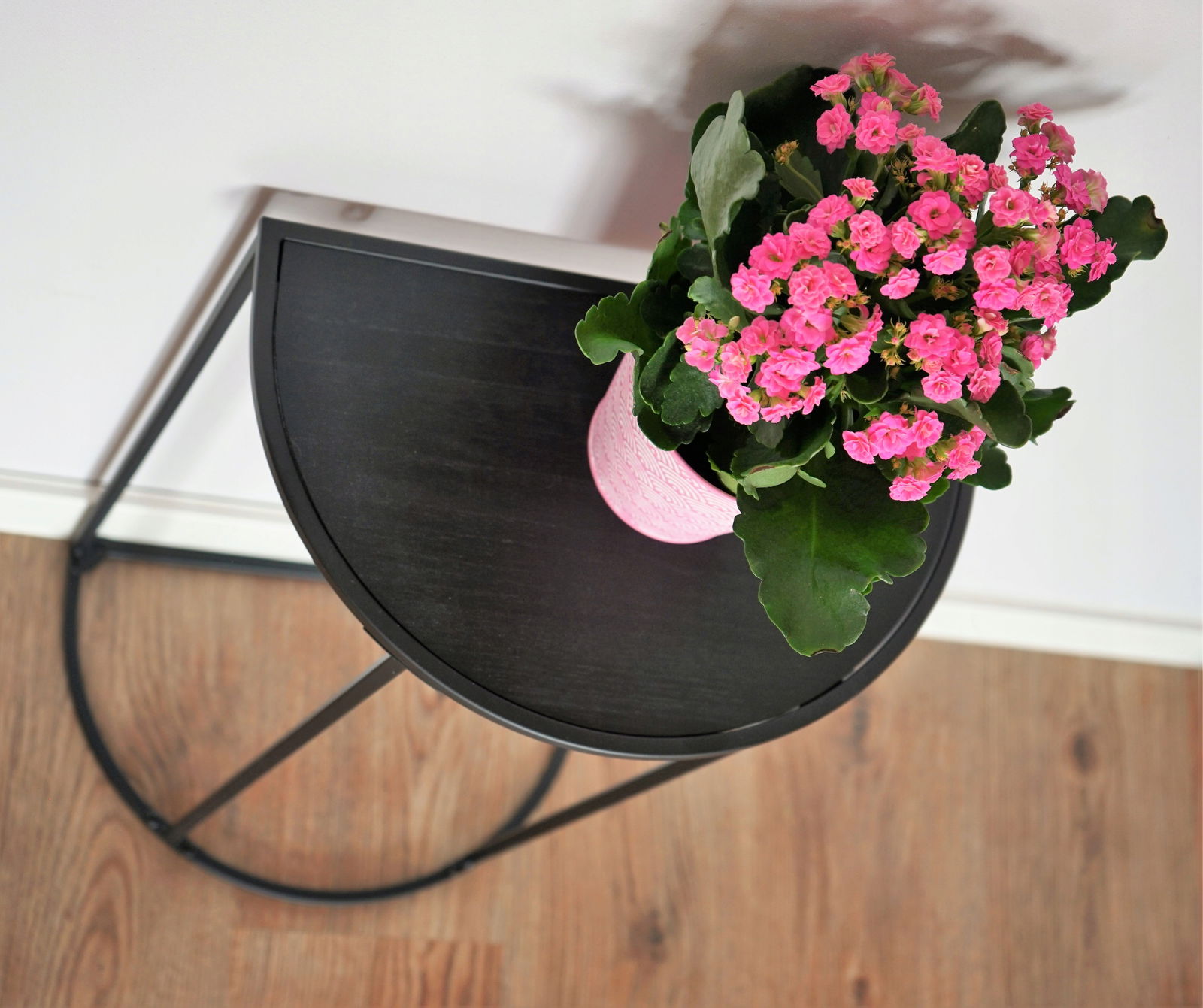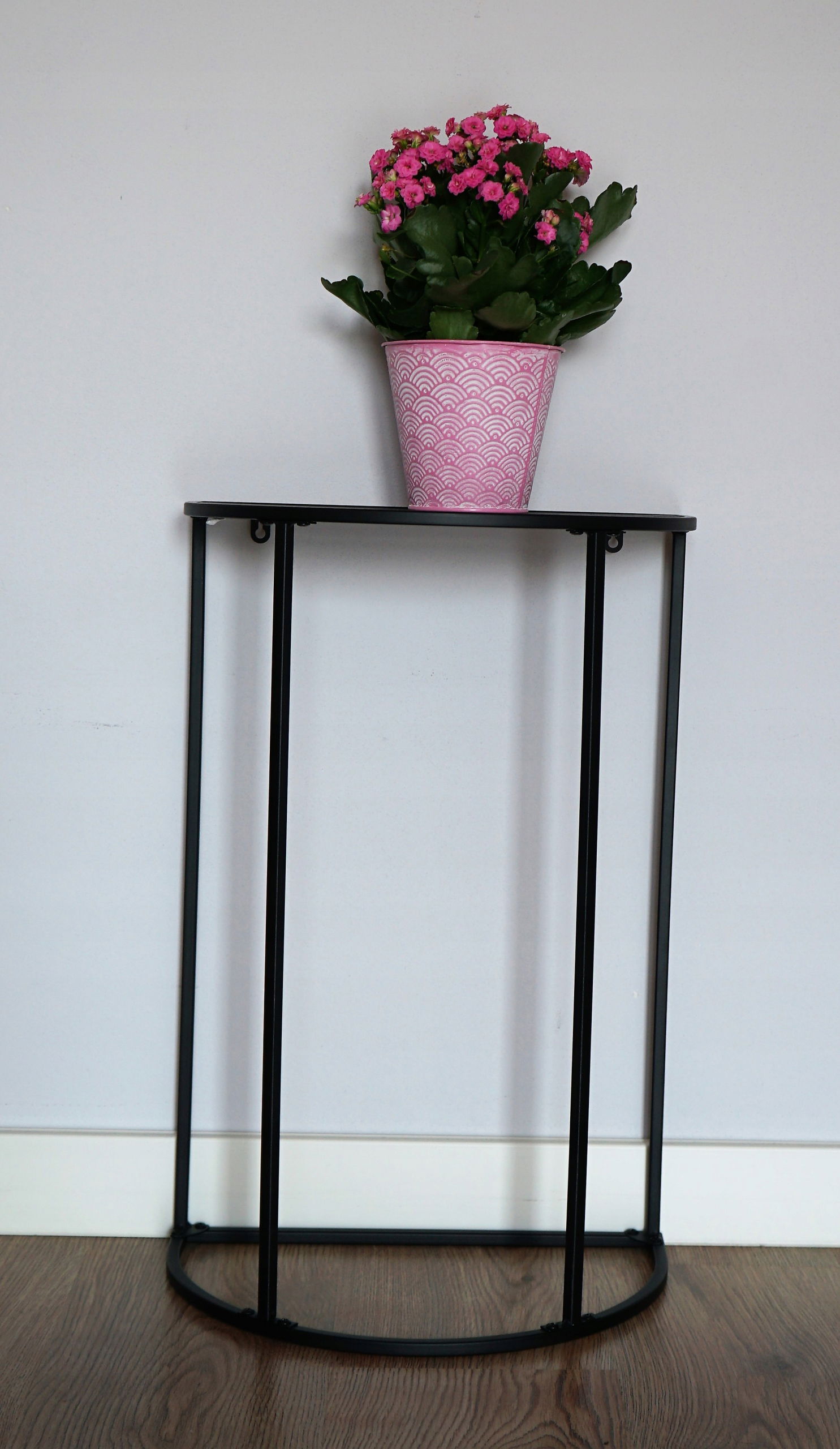 STOLIK METALOWY PRZYŚCIENNY BLAT OZDOBNY na kwiaty wazon 38x24x58 cm CZARNY