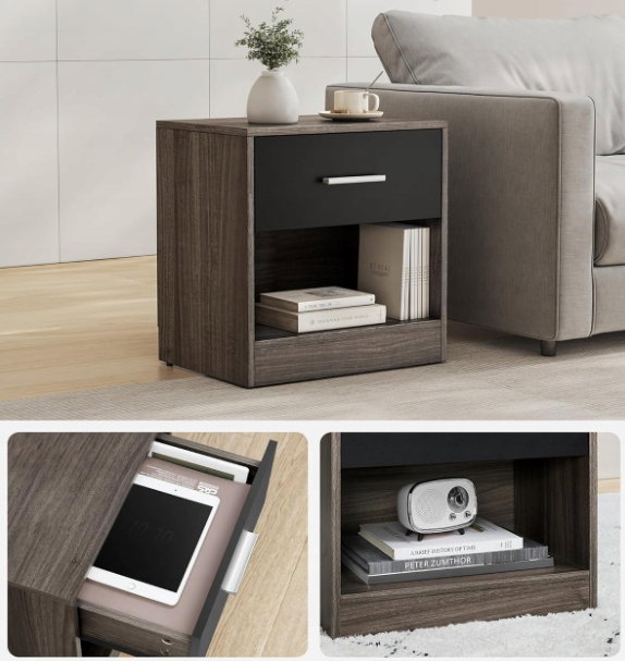- ✴️Solidna i stabilna: trwała płyta wiórowa, wysokiej jakości okucia i solidna konstrukcja zapewniają temu stolikowi bocznemu wysoką stabilność. Może wytrzymać łącznie do 75 kg, a szuflada może wytrzymać do 5 kg