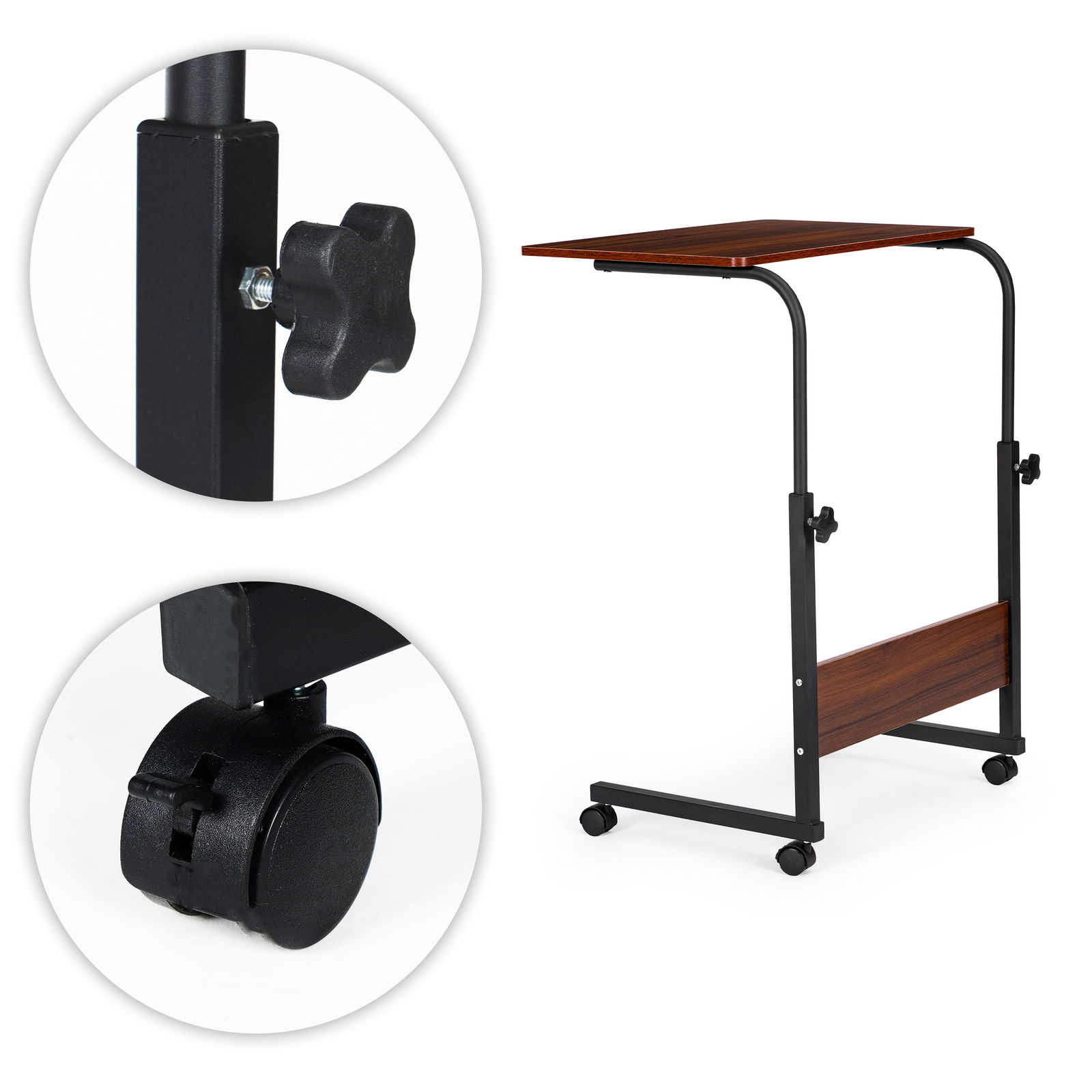 Stabilna, metalowa konstrukcja daje pewność użytkowania, a praktyczne zaciski pozwalają łatwo dopasować wysokość blatu – od 65,5 do 86 cm. Dzięki temu bez problemu ustawisz stolik tak, jak Ci wygodnie. Koniec z garbieniem się i napiętymi plecami – czas na wygodę, która naprawdę robi różnicę.