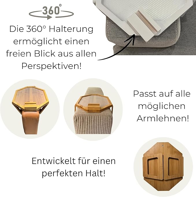 Dzięki obrotowej podstawce na telefon lub tablet, możesz komfortowo oglądać filmy, czytać czy prowadzić wideorozmowy – bez konieczności trzymania urządzenia w rękach! Koniec z układaniem telefonu na poduszkach i ciągłym poprawianiem, bo się przewraca.