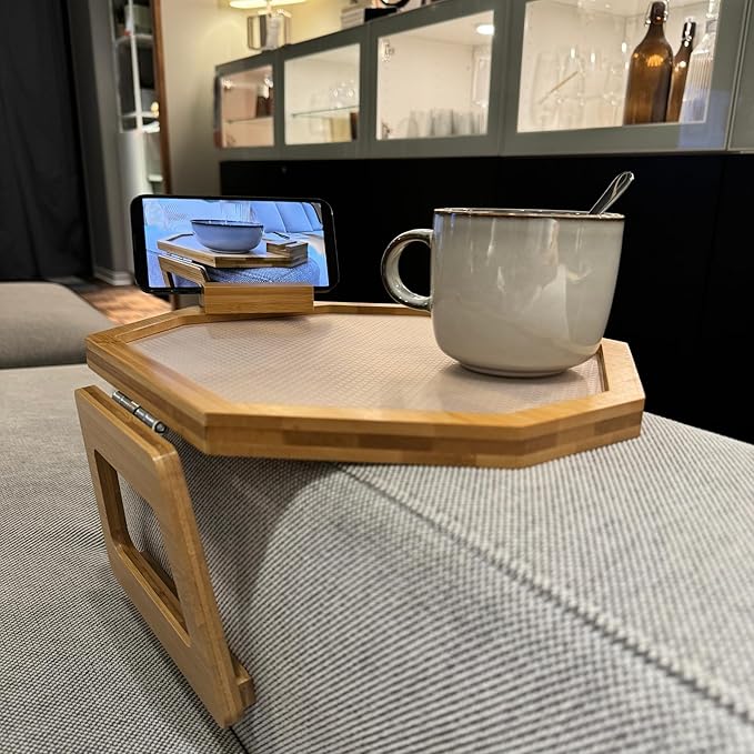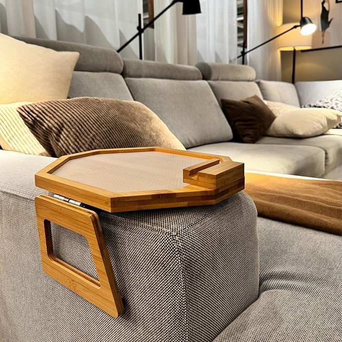 STOLIK TACKA ORGANIZER NA PODŁOKIETNIK SOFY KANAPY SKŁADANY BAMBUS