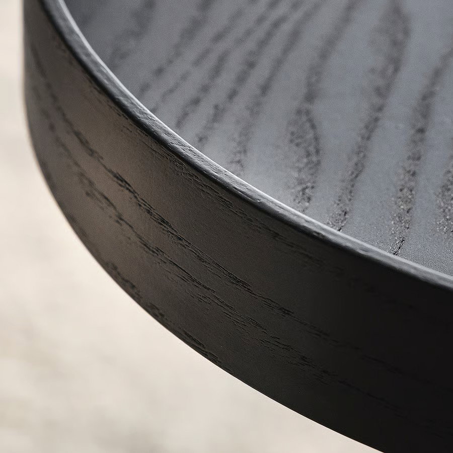 Konstrukcja stolika jest solidna i stabilna, a zastosowane materiały gwarantują trwałość na lata. Wykończenie w postaci czarnej okleiny jesionowej z wyraźnym rysunkiem drewna nadaje mu elegancki, naturalny charakter, który dobrze komponuje się zarówno z nowoczesnymi, jak i bardziej klasycznymi wnętrzami.