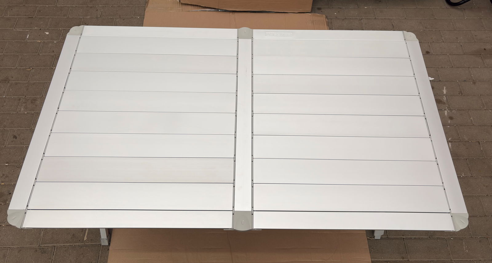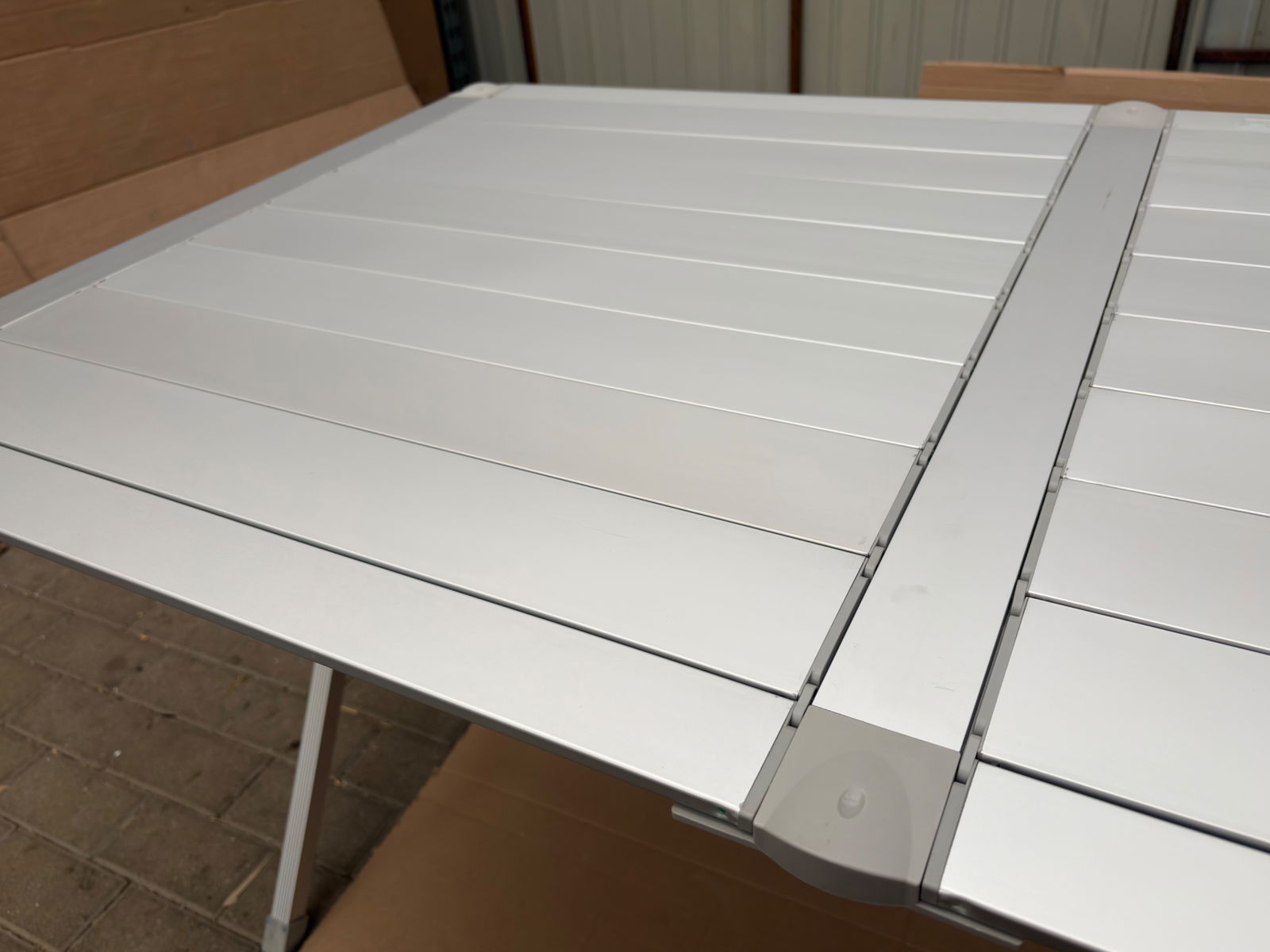 CamPart Michigan DLX to elegancki i solidny rolowany stół z dużym, aluminiowym blatem i praktyczną siatką na drobiazgi pod spodem. Stół ten ma zamontowaną poprzeczną belkę dla większej stabilności. Jest on łatwy do złożenia i posiada poreczną torbę. Specyfikacja Informacje ogólne Numer artykułu 227371 Numer fabryczny TA-0806 Marka CamPart Informacje o opakowaniu Rozmiar opakowania 136 x 23 x 15 cm Informacje techniczne Ilość osób 4 Charakterystyka Podzielny blat, Łącznie z futerałem, Podwieszana pod blatem półka z siatki, Zdejmowany blat Maksymalna nośność 30 kg Regulowany Lekki stół Informacje o produkcie Wysokość 70 cm Długość 140 cm Kształt Prostokątny Szerokość 80 cm Kolor Szary Waga ogólna 6.9 kg Wysokość blatu 70 cm Informacje o materiale Materiał blatu Aluminium Materiał stelaża Aluminium Blat odporny na wysoką temperaturę Blat odporny na wilgoć Blat odporny na promienie UV
