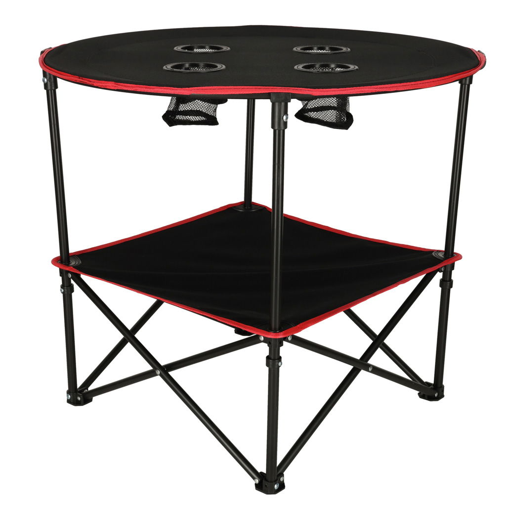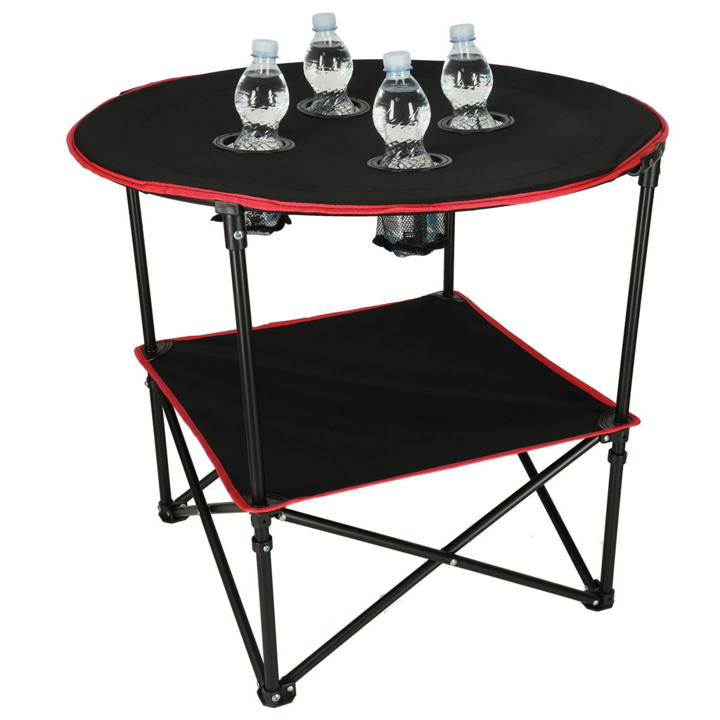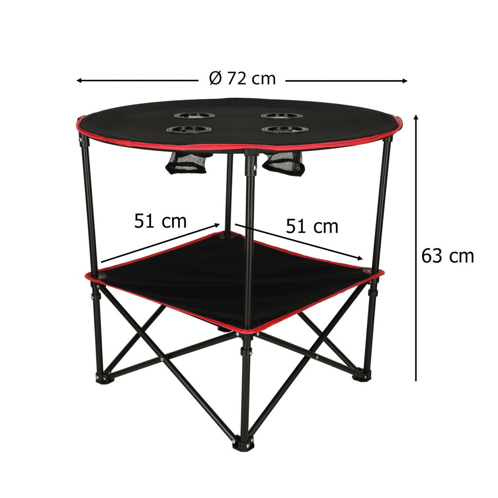 PRAKTYCZNE ROZWIĄZANIA DLA KOMFORTU - Stolik wyposażony jest w specjalne wgłębienia na napoje, które zapobiegają przewróceniu się kubków i butelek, a dodatkowa dolna półka zapewnia więcej miejsca na akcesoria. Antypoślizgowe nóżki zwiększają stabilność, nawet na nierównym podłożu.
