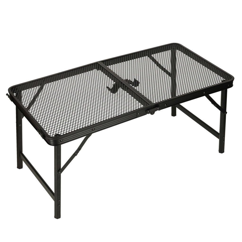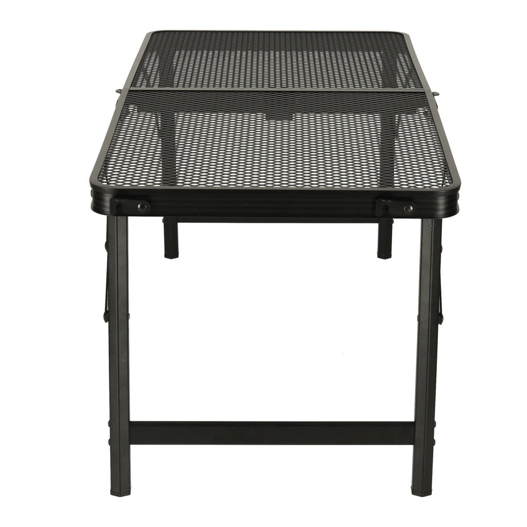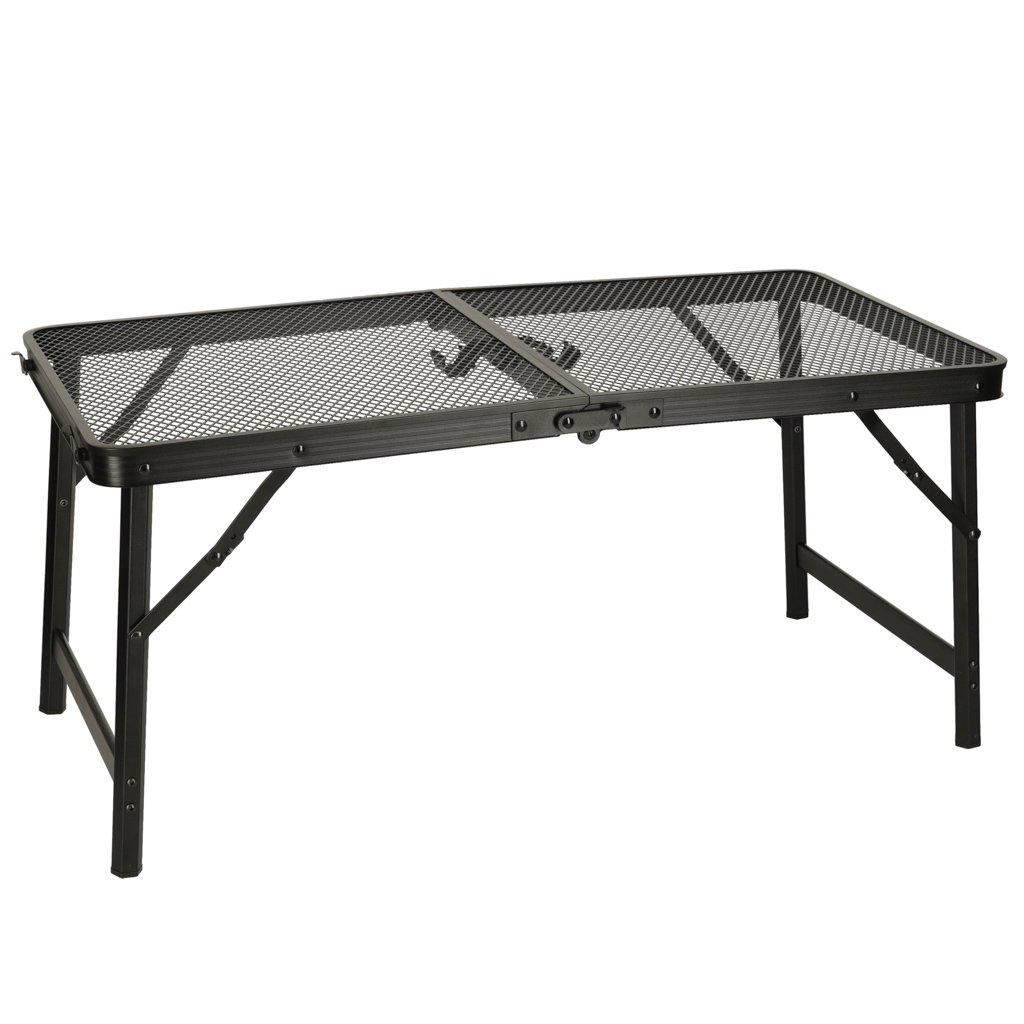 TRWAŁOŚĆ I STABILNOŚĆ W TERENIE - Aluminiowa rama odporna na rdzę i żelazny blat siatkowy zapewniają stabilność nawet na nierównym terenie. Antypoślizgowe nóżki oraz blokada przed złożeniem gwarantują bezpieczeństwo podczas użytkowania – idealne rozwiązanie na plażę, działkę, pod namiot i do ogrodu.