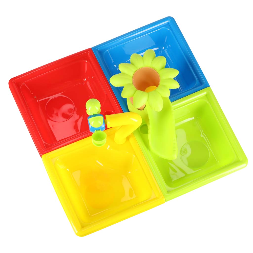 KREATYWNA ZABAWA NA ŚWIEŻYM POWIETRZU - Ten zestaw daje dzieciom możliwość tworzenia własnych mini-światów wodnych i piaskowych, co pozwala na wielogodzinne, wciągające zajęcie. Maluchy mogą budować kanały i mostki, przesypywać piasek, przelewać wodę, uruchamiać młynki i tworzyć całe miasteczka lub porty wodne. Zabawka rozwija koordynację ruchową, wyobraźnię przestrzenną oraz uczy współpracy w grupie, gdy bawi się w nią więcej dzieci.