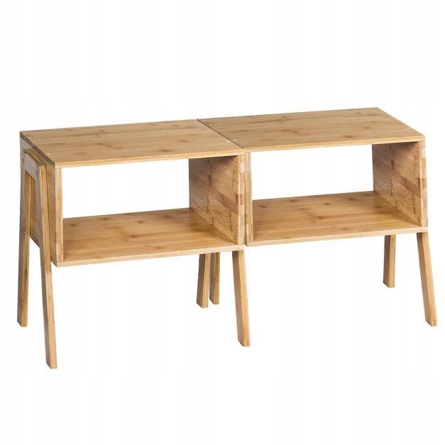 Zestaw 2 stolików nocnych wykonanych z trwałego i wysokiej jakości bambusa. 4 pogrubione nóżki są wystarczająco mocne, aby utrzymać przedmioty codziennego użytku o wadze do 30 kg. Przedmioty codziennego użytku można idealnie umieścić na górnej lub otwartej półce i trzymać w zasięgu ręki łóżka. Możliwość układania w stosy nie tylko pozwala uzyskać różne układy, ale także oszczędza czas i wysiłek podczas montażu. Używając w 100% naturalnego bambusa, czujesz naturalny związek ze środowiskiem i prowadzisz zrównoważony styl życia. Powierzchnia pokryta nieszkodliwym lakierem jest bezpieczna w użytkowaniu i łatwa do czyszczenia.