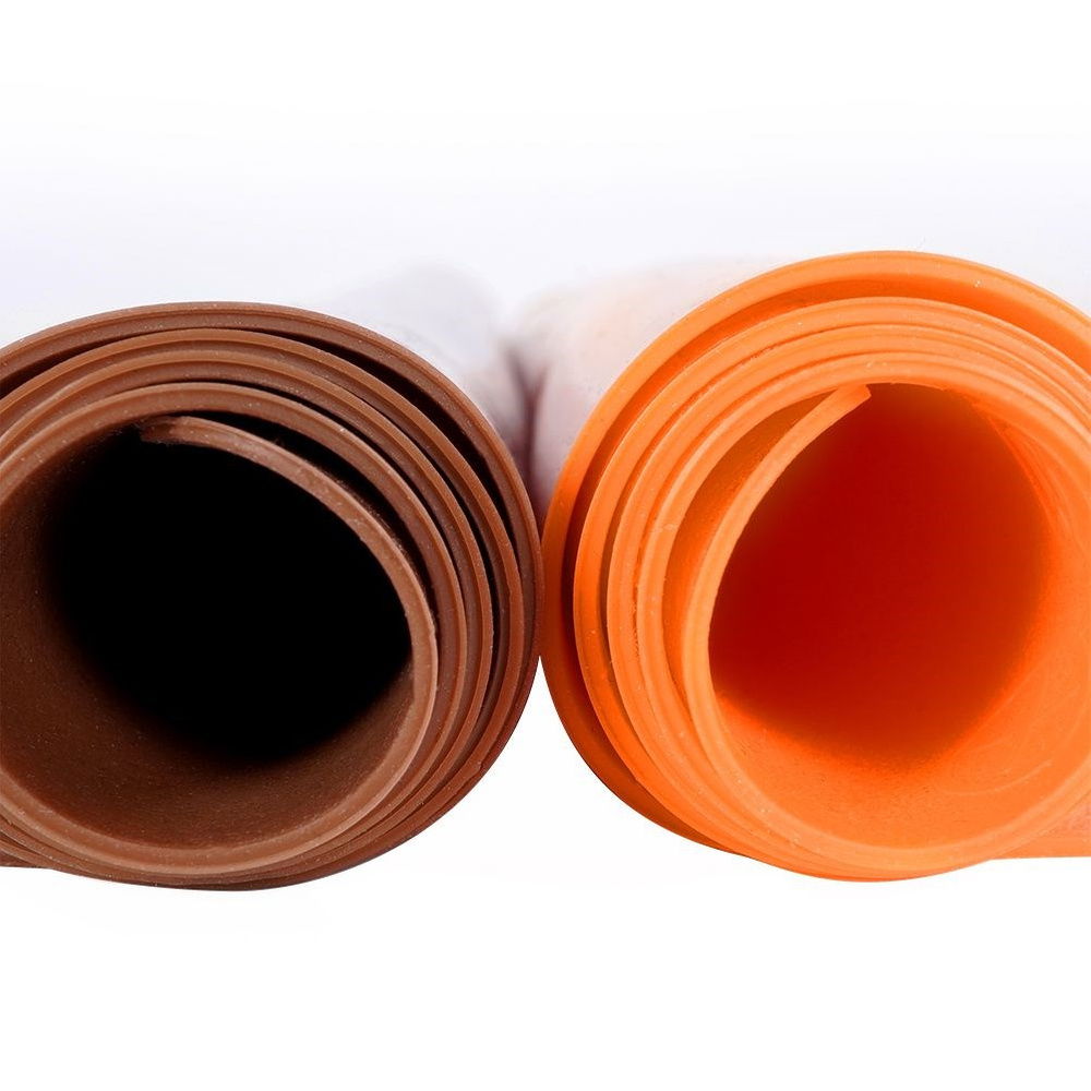 Nowoczesna, pomarańczowa stolnica silikonowa, z jednej strony wyposażona w powłokę zapobiegającą przywieraniu, a z drugiej zapobiegającą przesuwaniu się maty, dzięki czemu świetnie trzyma się blatu. Mata jest idealna do wyrabiania ciast, ciasteczek, pizzy. Całkowicie bezpieczna dla zdrowia i neutralna dla żywności. Do wykrawania nie należy używać ostrych noży, może to uszkodzić stolnice.