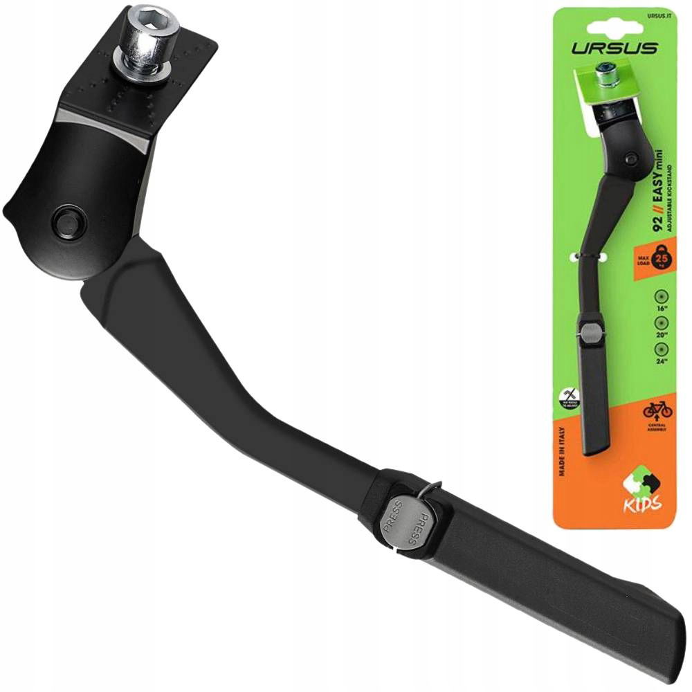 Podpórka rowerowa centralna Ursus Easy Mini to praktyczne i solidne rozwiązanie dla rowerów dziecięcych i juniorskich. Wykonana z wysokiej jakości aluminium z szeroką, wzmocnioną podstawą z tworzywa, zapewnia stabilność i wygodę użytkowania. Dzięki możliwości regulacji długości, pasuje do rowerów z kołami w rozmiarze od 16 do 24 cali.