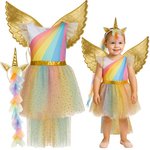 Strój Jednorożec dla dzieci, kostium przebranie na bal, magiczny zestaw z sukienką, opaską i skrzydłami – dla małej księżniczki w rozmiarze 110 - 116 cm KRUZZEL!