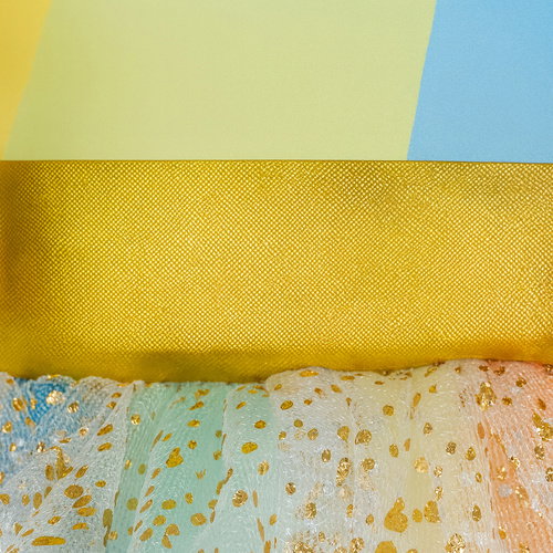 - błyszczący tiul ze złotymi gwiazdkami