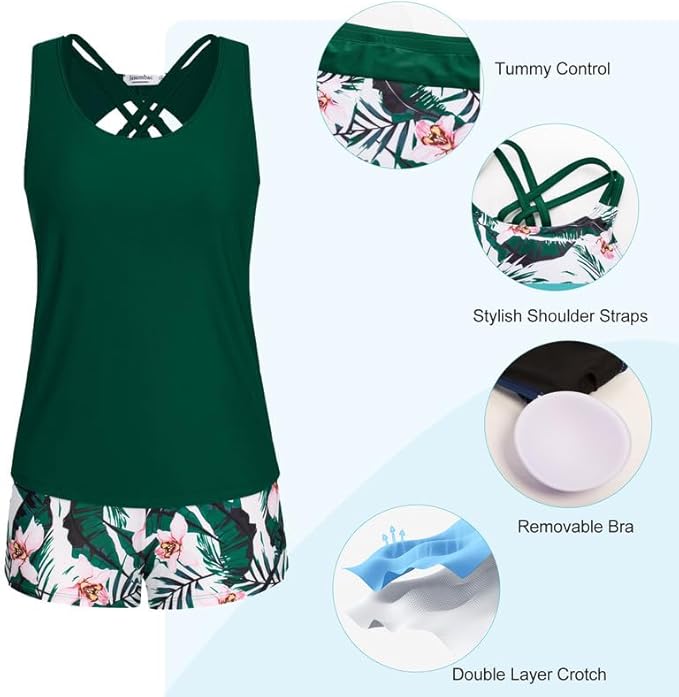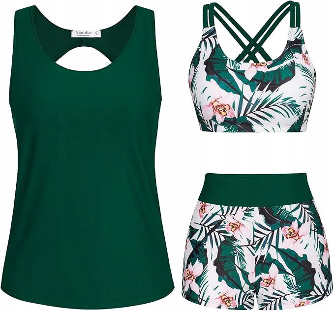 JASAMBAC 3-częściowy damski tankini wyszczuplający brzuch, push up bikini i szorty kąpielowe z wysokim stanem, proste stroje kąpielowe, damski sportowy strój kąpielowy,