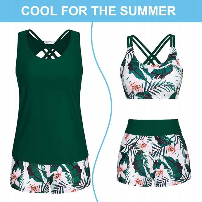 Może być używany na różne okazje: basen, imprezę przy basenie, miesiąc miodowy, plażę itp. Nasz praktyczny trzyczęściowy kostium kąpielowy tankini oferuje stylową i praktyczną opcję na basen i plażę. Ciesz się swoim dniem w słońcu ze stylem i komfortem.