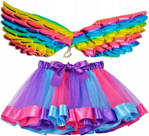 SPECYFIKACJA– skrzydełka szer. 42 cm x dł. 23 cm , spódniczka dł.30 cm , szer. gumki 24 cm x 2 bez naciągania na płasko, max . nacigągnięie 40cm x2, wiek ok. 3-6 lat