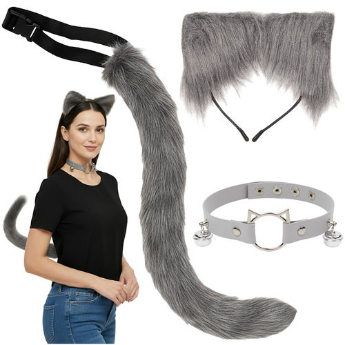 - kompletny zestaw 3w1 - ogon, opaska z uszami i choker