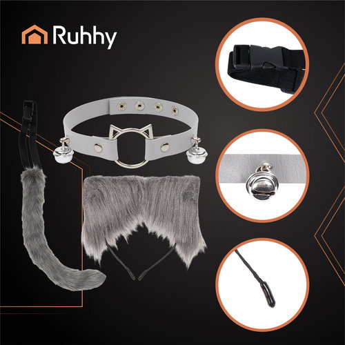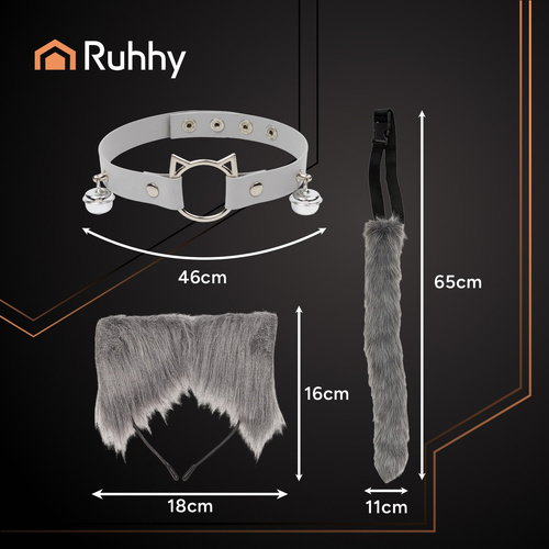 Strój kota / lisa / wilka RUHHY ogon uszy choker, szary zestaw Therian 3w1, który przyciąga spojrzenia!