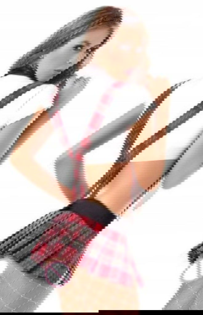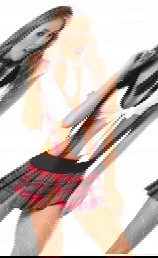 Seksowna bielizna dla dorosłych - kostium niegrzecznej uczennicy. Przebranie, które powinno znaleźć się w garderobie każdej kobiety. Strój pobudzi każdego faceta. Pięknie uwydatnia ciało.