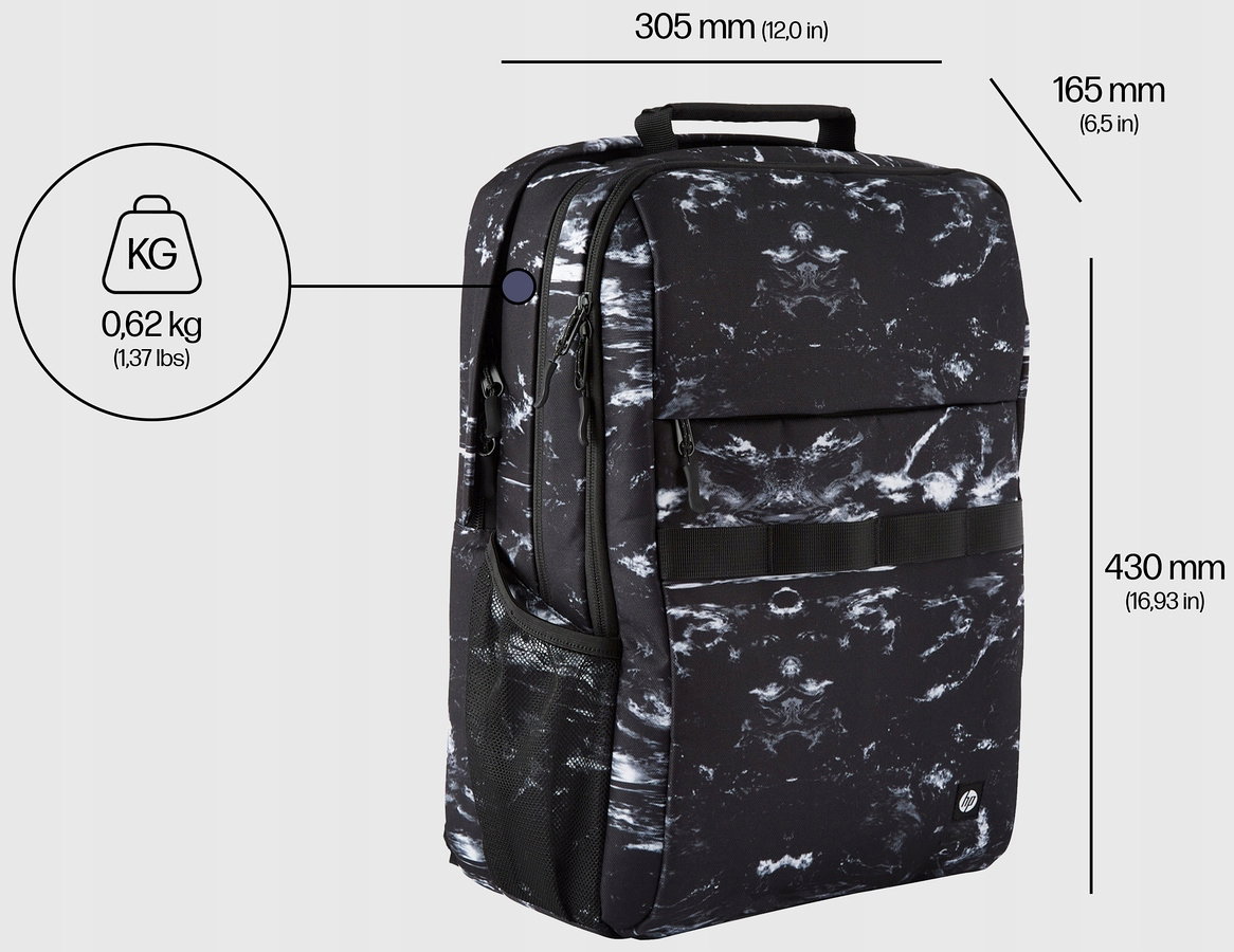 Plecak HP Campus XL 20l Marble Stone 7J592AAR, oryginalny plecak firmy HP przeznaczony do laptopów o przekątnej do 16.1 cali (40.9 cm)