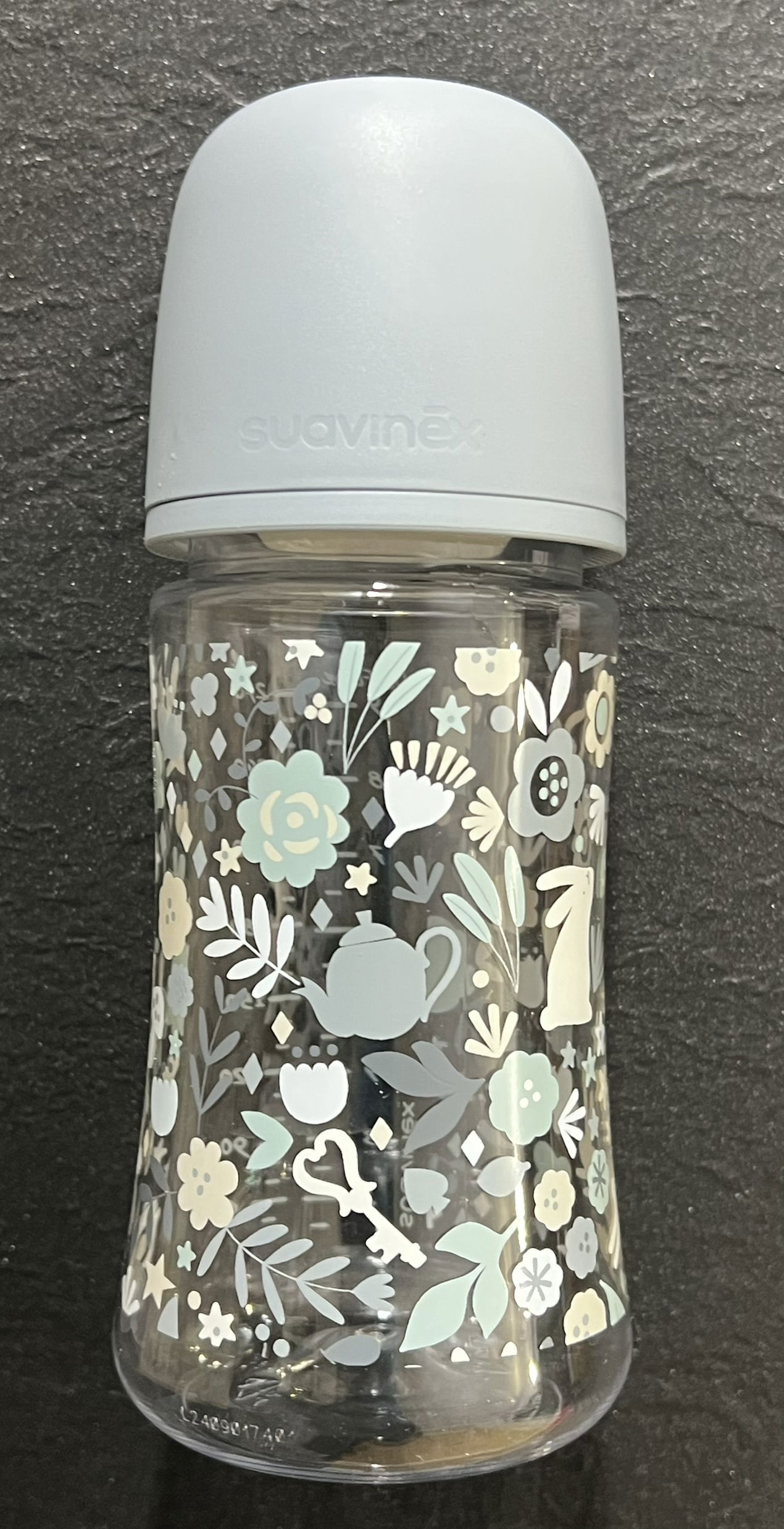 Suavinex, butelka 270 ml z symetrycznym smoczkiem SX Pro o średnim przepływie, silikonowa z zaworem antykolkowym. Ultramiękki, cienki silikon. Dla niemowląt powyżej 3. miesiąca życia, Wonderland Blue Floral.