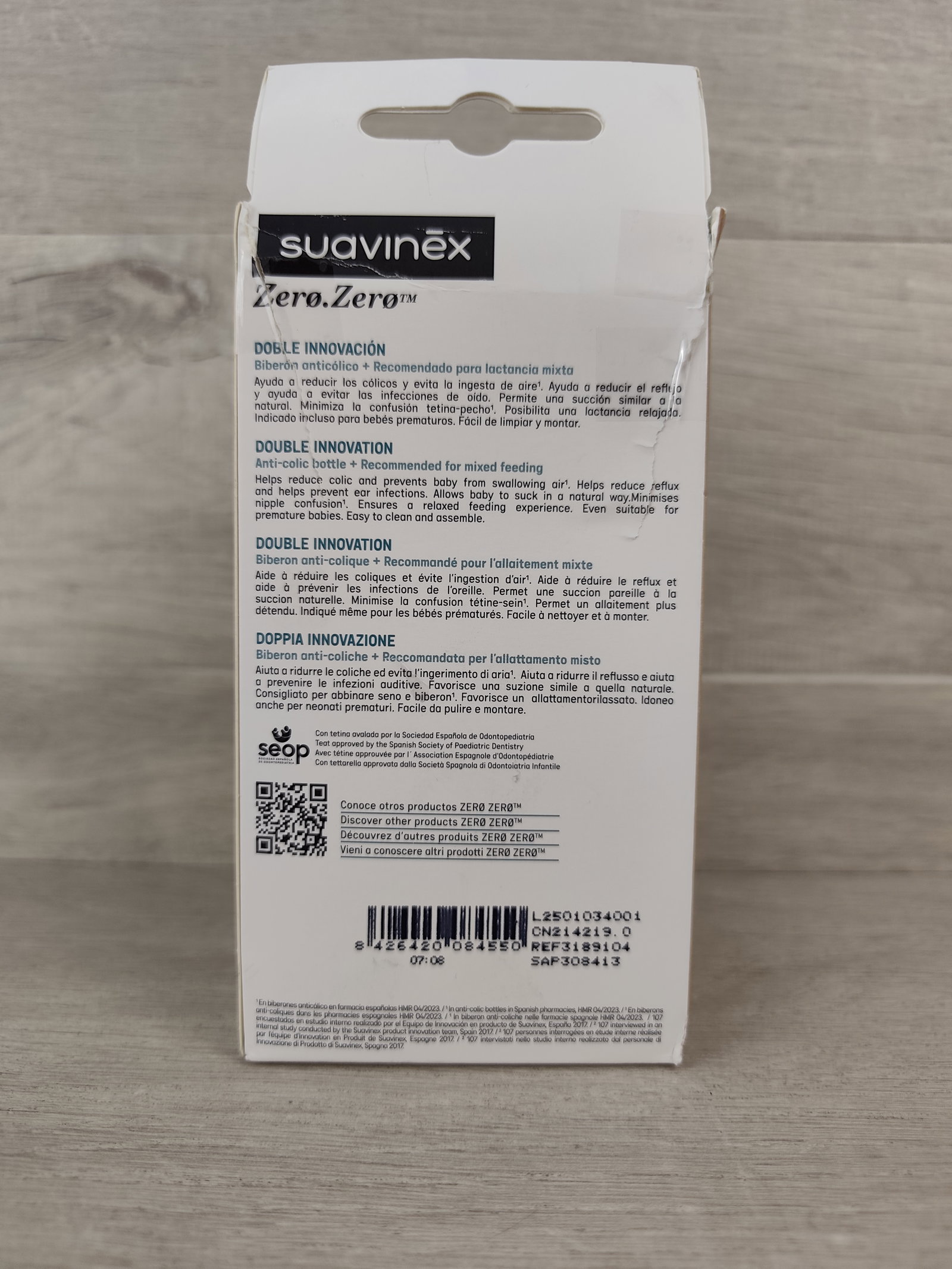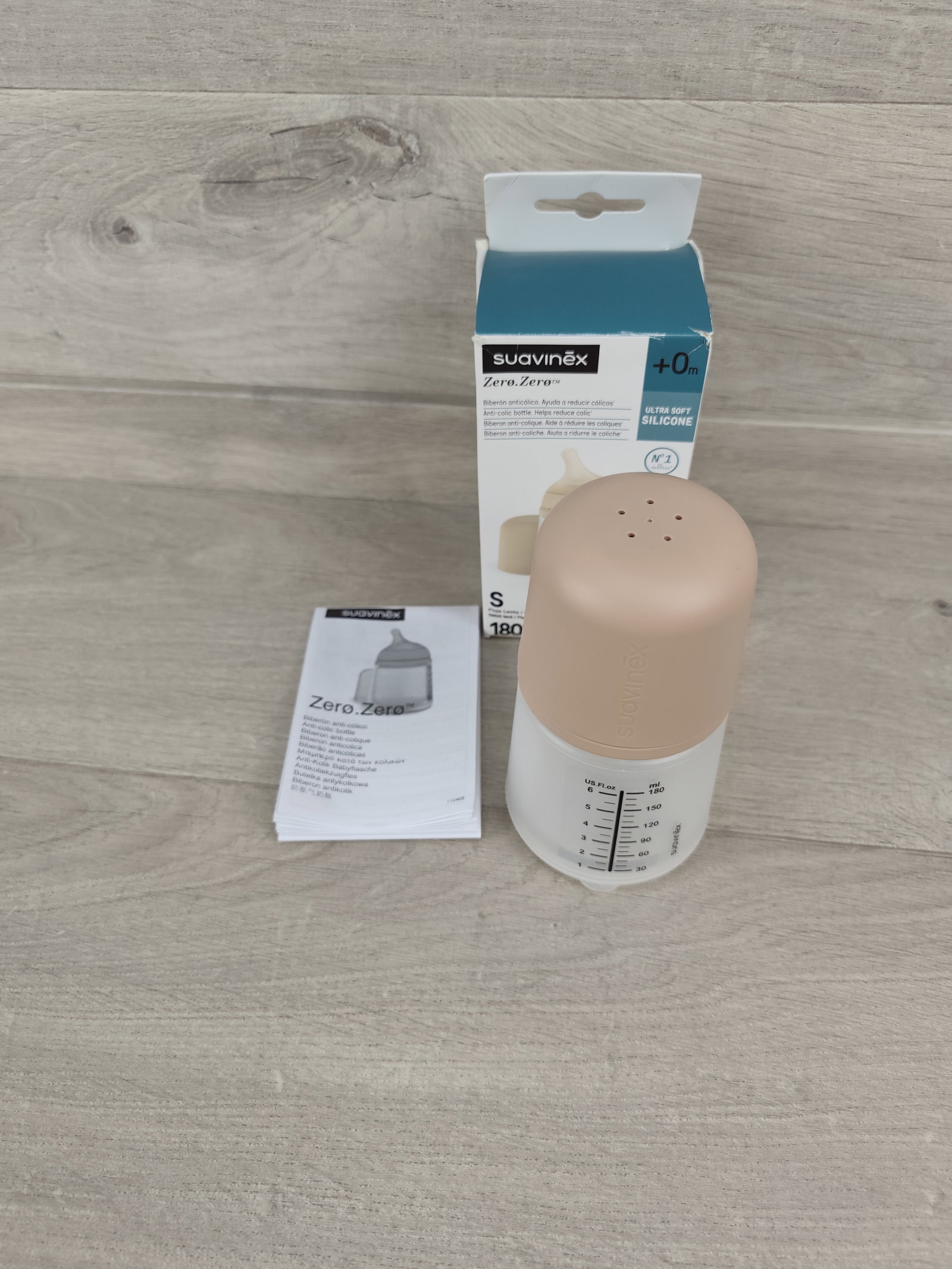 🍼 Suavinex Zero‑Zero 180 ml to innowacyjna butelka antykolkowa stworzona z myślą o noworodkach i dzieciach karmionych piersią lub mieszanie. Jej unikalna wewnętrzna silikonowa torebka kurczy się podczas ssania — dokładnie tak jak gruczoł mleczny mamy. Dzięki temu pokarm nie miesza się z powietrzem, co znacząco zmniejsza ryzyko kolki i połykania powietrza.