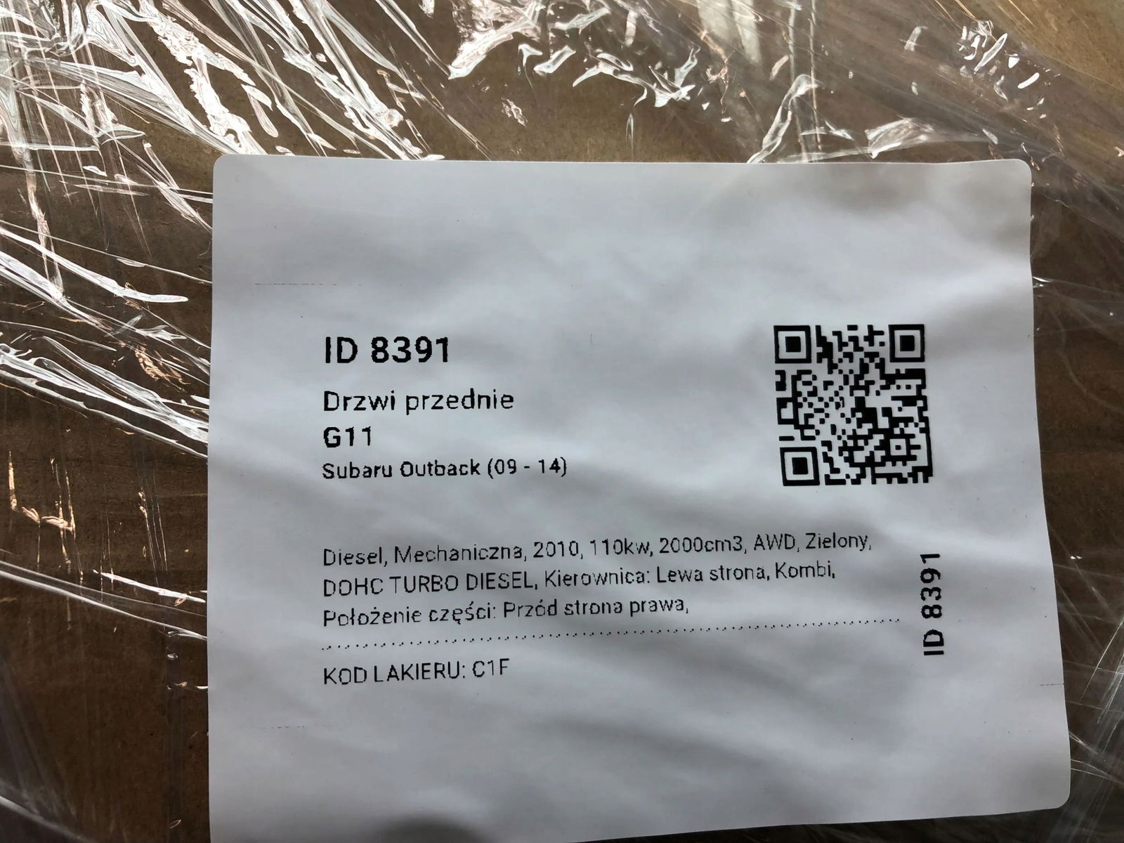 SUBARU OUTBACK 4 IV BR 2009-2014 DRZWI PRZÓD PRAWY PRZEDNIE C1F