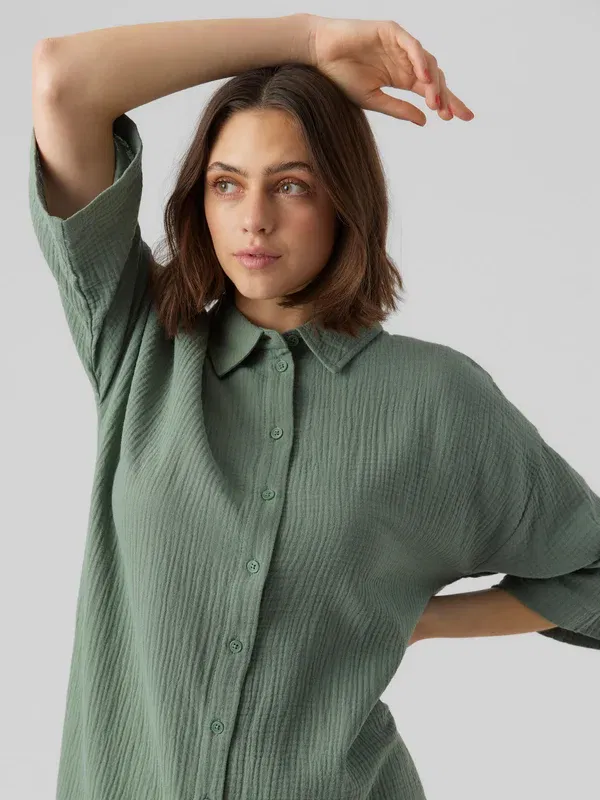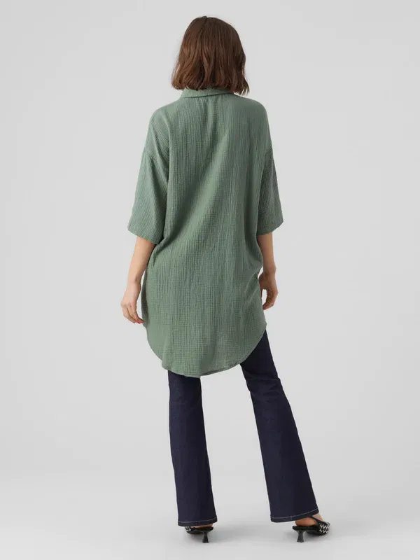 - Długość: Nad kolano - Rękaw: Szerokie rękawy - Okazja/styl: Sukienka koszulowa jest wszechstronna i stylowa. A ten styl to absolutny must-have. Połącz go z dżinsami lub noś tak, jak jest. Dodaj pasek w talii, aby podkreślić swoją figurę. Ta sukienka koszulowa oferuje nieograniczone możliwości stylizacji i jest idealna na dni, kiedy nie wiesz, w co się ubrać - Krój: Luźny krój - Dekolt: Okrągły dekolt - Długość rękawa: Pół rękawa