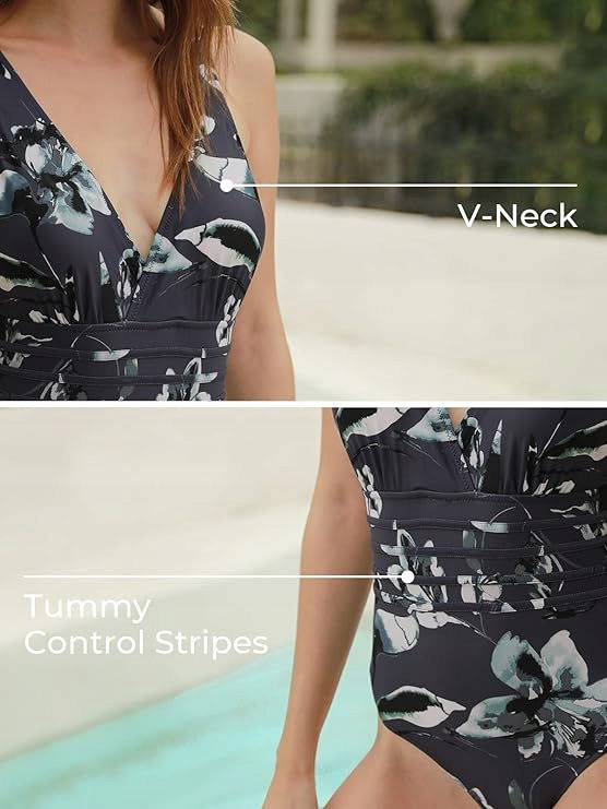 - 【JEDNOCZĘŚCIOWY KOSTIUM KĄPIELOWY Z DEKOLTEM W SZPIC】Ten jednoczęściowy kostium kąpielowy ma głęboki dekolt w szpic i regulowane ramiączka skrzyżowane na plecach, dzięki czemu idealnie podkreśli Twoje krągłości i sprawi, że będziesz wyglądać bardziej kusząco, szykownie i zalotnie.