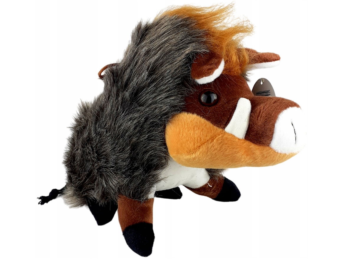Pluszowy dzik to doskonały towarzysz do zabawy i przytulania dla każdego dziecka. Pluszak pokryty jest niezwykle przyjemnym w dotyku materiałem imitującym futerko i wypełniony miękkim pluszem. Zabawka posiada wszystkie cechy charakterystyczne dzikiego zwierzątka, które odwzorowuje. Urocze oczka oraz wystające kły z pewnością zachwycą i przyciągną uwagę najmłodszych. Pluszowy dzik występuje w pozycji siedzącej i samodzielnie potrafi utrzymać równowagę. Pluszak doskonale sprawdzi się jako prezent, który zapewni mnóstwo radości, stając się nieodłącznym towarzyszem na wiele lat lub wspaniałym elementem dekoracyjnym dziecięcego pokoju. Maskotka posiada doszytą zawieszkę. Wymiar produktu (siedzący): 19cm