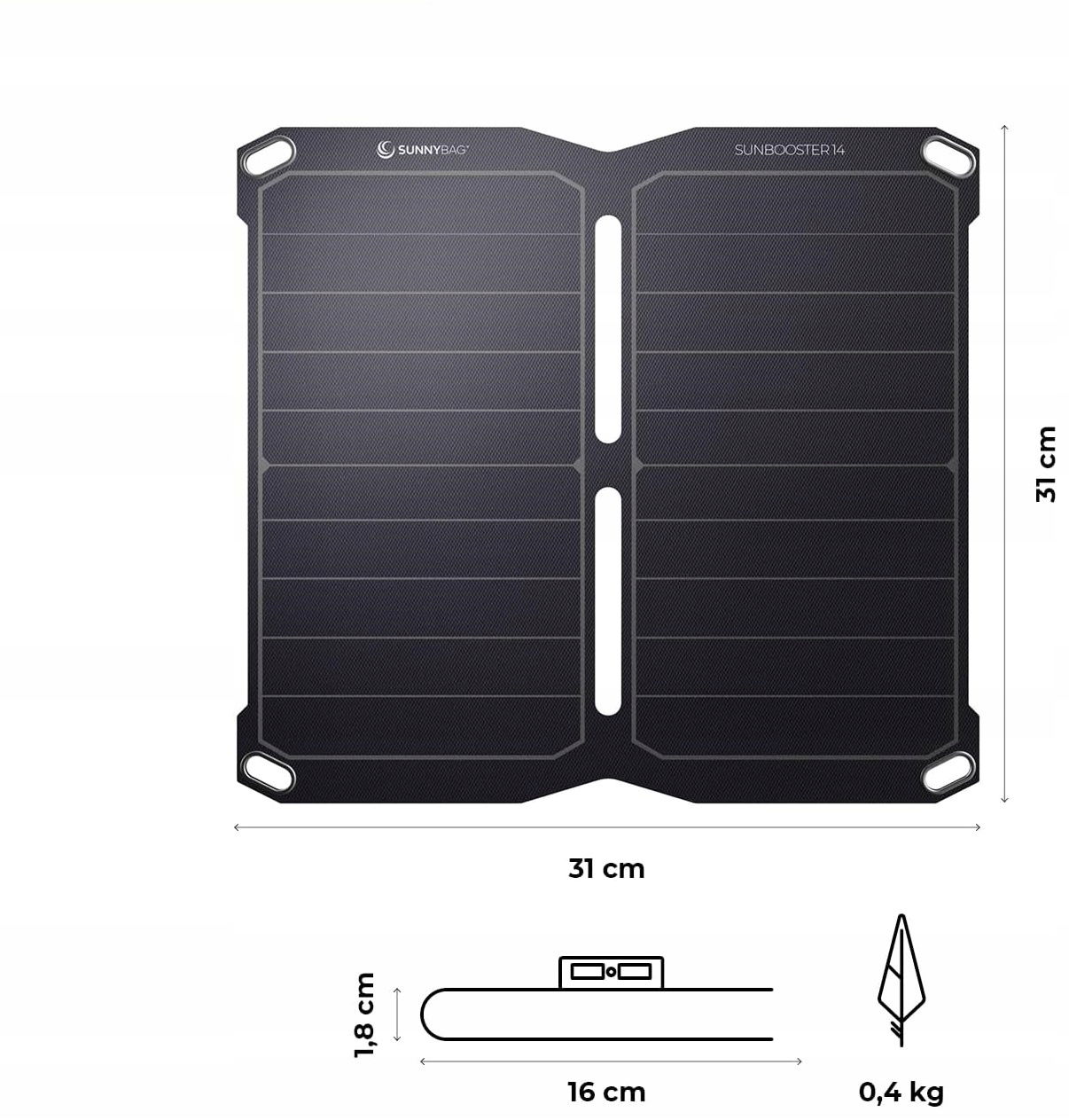 ☀️ Sunnybag SUNBOOSTER 14W – składany panel solarny z 2 wyjściami USB