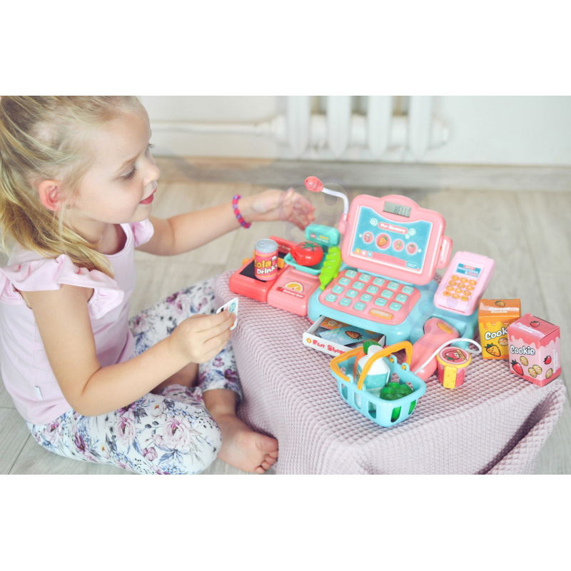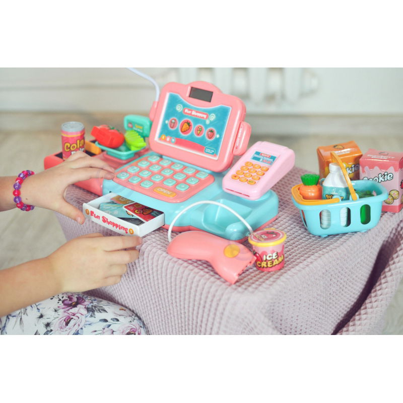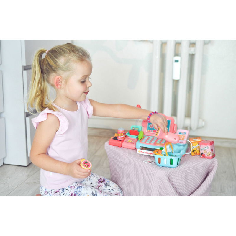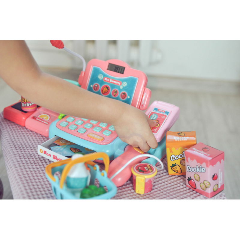 Poszukujesz interaktywnej zabawki, która rozbudzi wyobraźnię Twojego dziecka i zachęci je do kreatywnego myślenia? Kasa Sklepowa od Woopie to doskonały wybór! Zestaw zawiera wszystko, czego potrzebuje mały sprzedawca: wagę, czytnik, mikrofon, klawiaturę i terminal płatności. Dziecko może ważyć owoce i warzywa, skanować produkty, a nawet dokonywać płatności gotówką lub kartą. W zestawie znajduje się także koszyk na zakupy, paczka ciasteczek, sztuczne pieniądze, butelka wody oraz wiele innych akcesoriów. Kasa emituje realistyczne dźwięki, co dodatkowo wzbogaca zabawę. Wykonana z bezpiecznych dla dzieci materiałów, ta zabawka nie tylko rozwija wyobraźnię, ale także wspiera rozwój społeczny. Dołącz do grona zadowolonych klientów Woopie i spraw swojemu dziecku radość oraz niezapomniane chwile zabawy!
