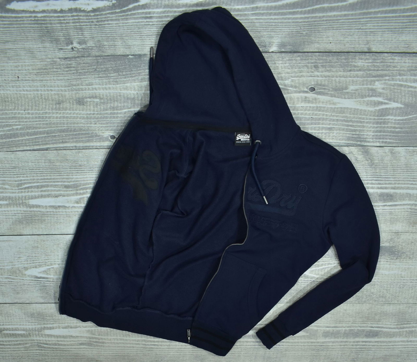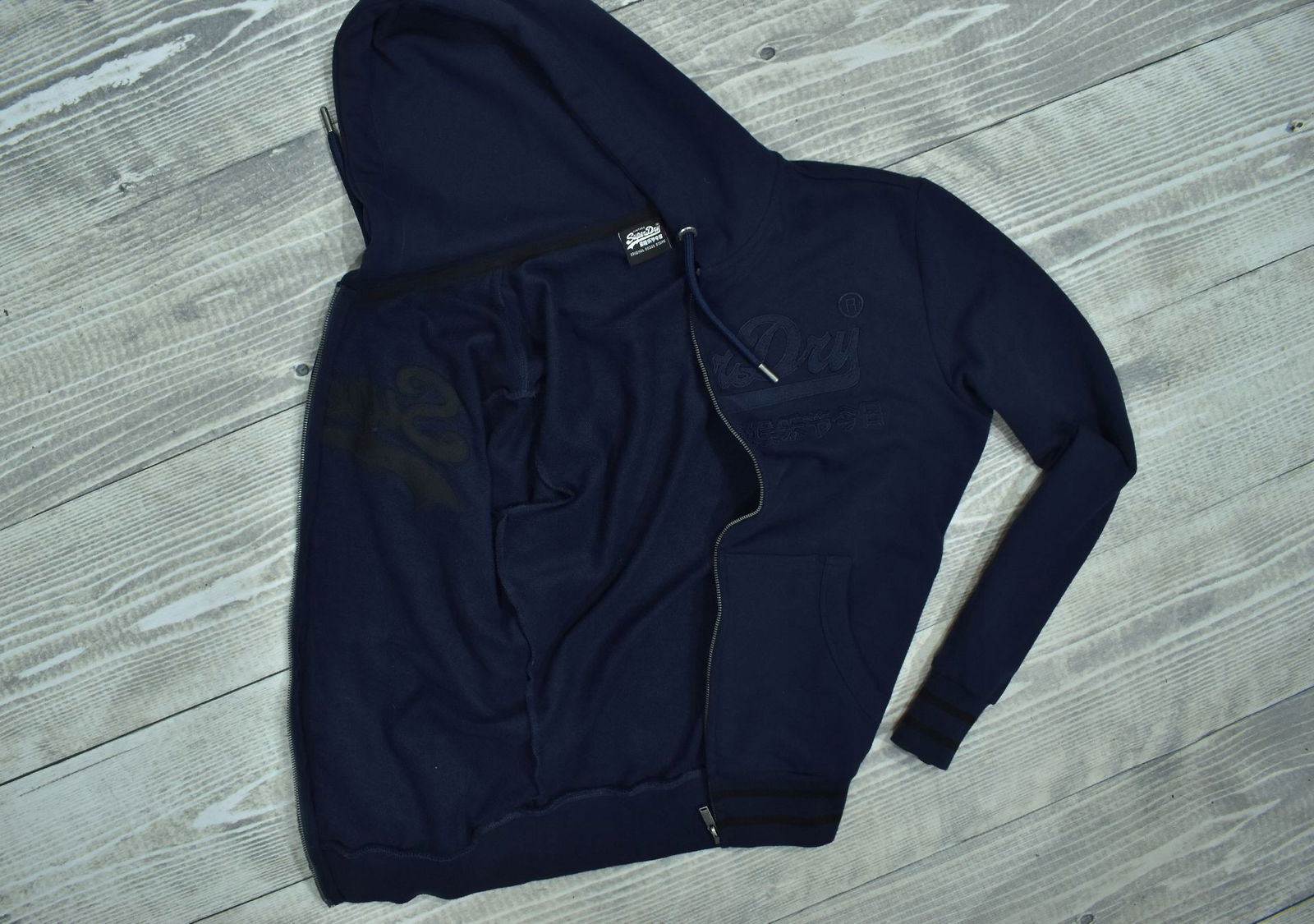 SUPERDRY Granatowa Bluza z Kapturem Męska Full Zip M