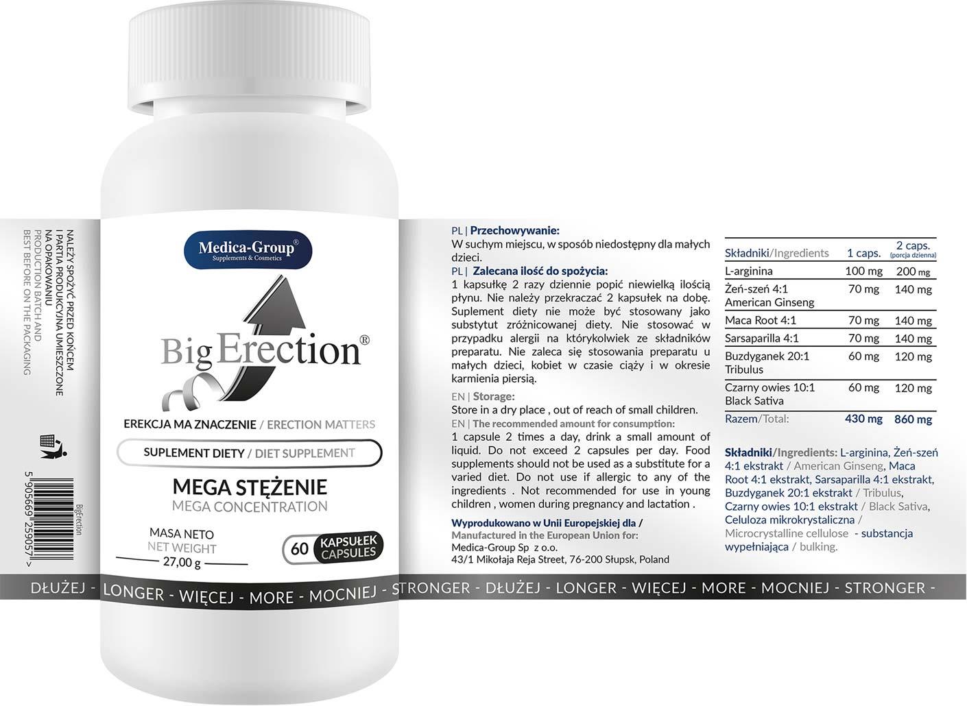 Składniki zawarte w suplemencie diety BigErection mają na celu pomóc w uzyskaniu silniejszej erekcji, dłużej trwających wzwodów, większej sprawności seksualnej i wyjątkowo mocnych doznań.