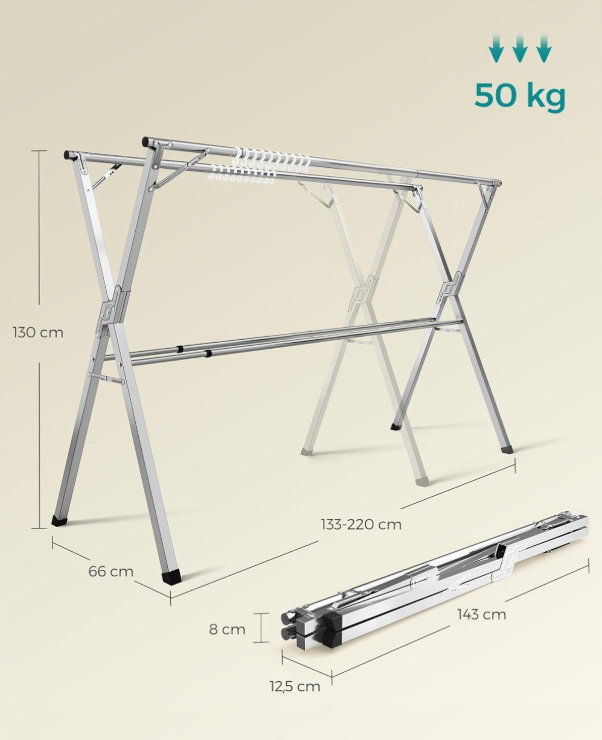Suszarka do bielizny 133-200 cm Rozkładana składana SONGMICS LLR902E01