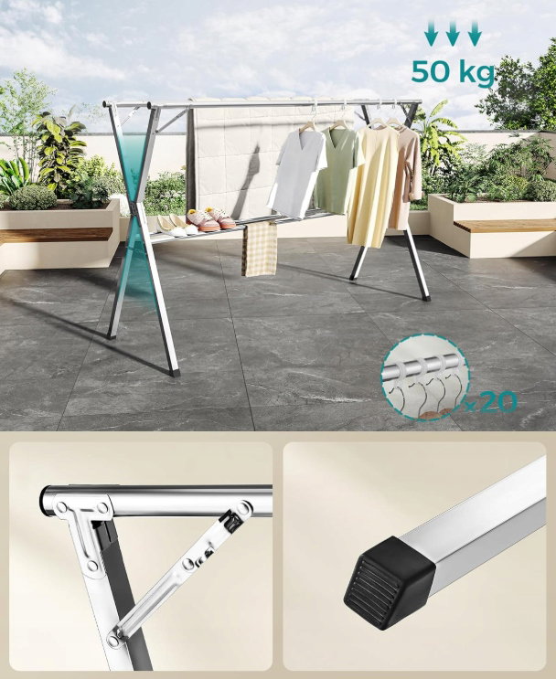 - ✴️【ŁATWE SCHOWANIE】 Dzięki swojej strukturze w kształcie X, suszarka do ubrań SONGMICS może być łatwo złożona i przechowywana w celu zaoszczędzenia miejsca, gdy nie jest używana