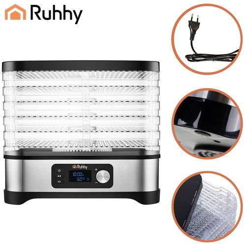 Suszarka do grzybów RUHHY 5 tacek 10 L, LCD, timer 72 h, 35-70°C + akcesoria - energooszczędna i BPA FREE