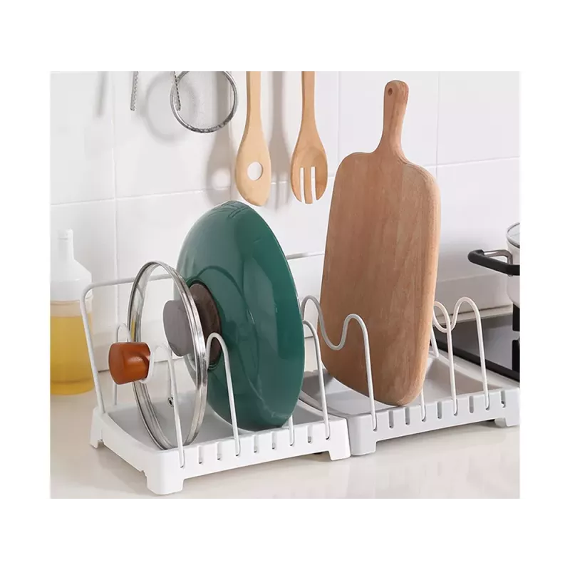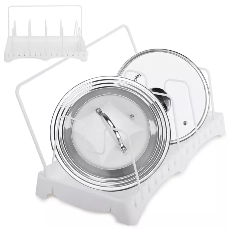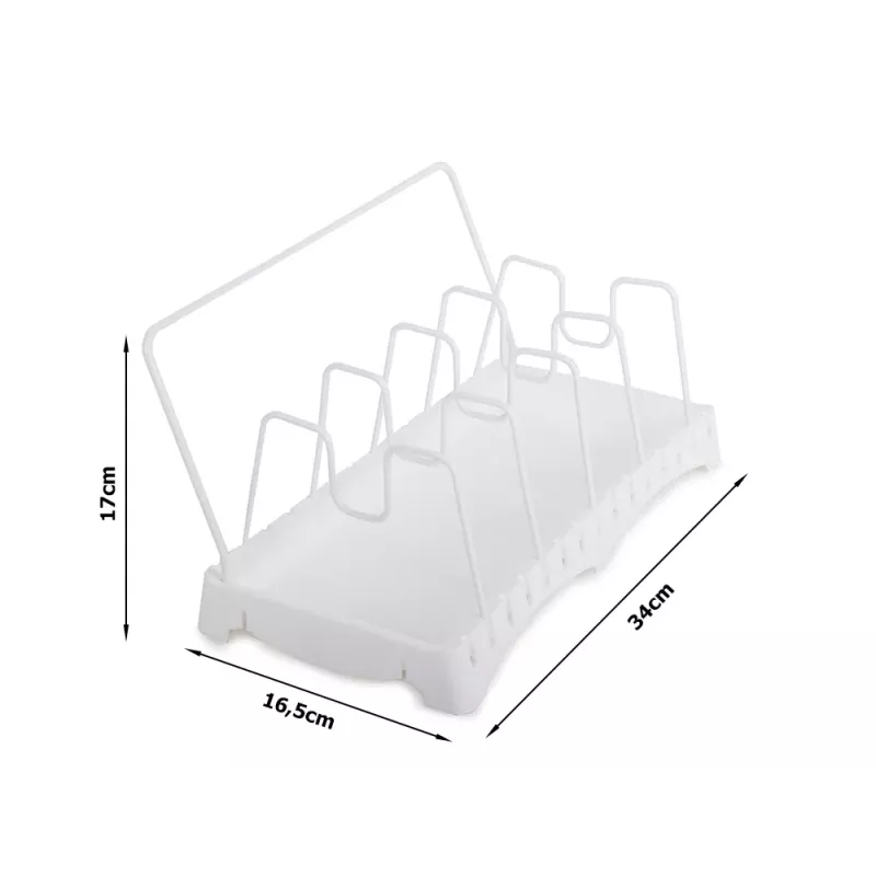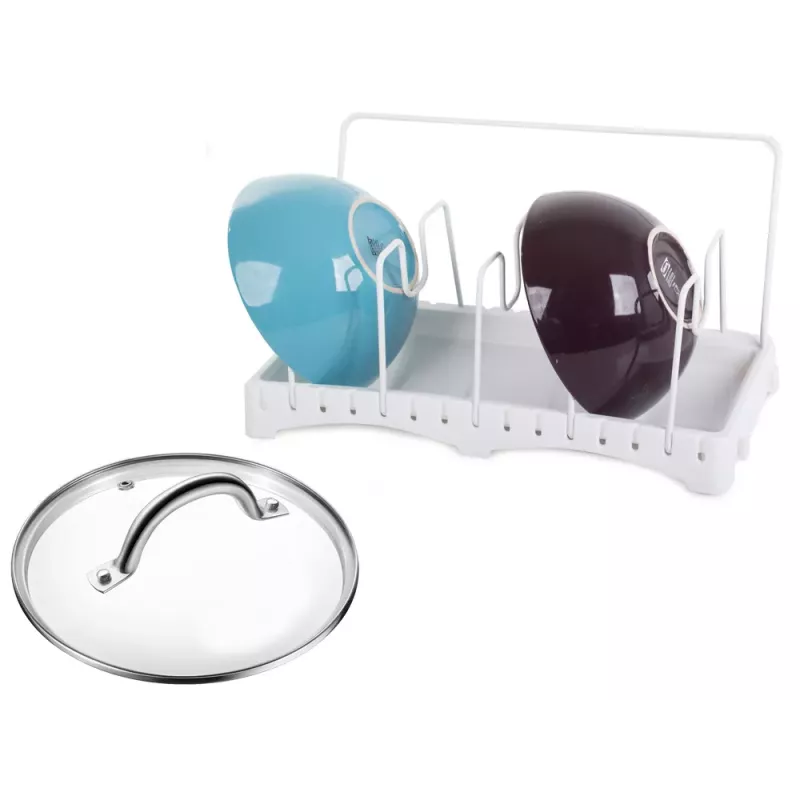 Suszarka pozwoli uporządkować różne akcesoria kuchenne takie jak: pokrywki do garnków, patelnie, garnki, deski do krojenia, naczynia, brytfanny do zapiekania, itp. Stojak wyposażony jest w ociekacz, dzięki któremu akcesoria kuchenne po umyciu mogą swobodnie obeschnąć przed schowaniem do